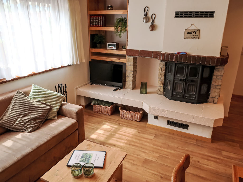 Fricktalerhuus Apt 5, 4-Zimmer-Wohnung 70 m2, im Erdgeschoss. Zweckmässig und gemütlich eingerichtet: Wohn-/Esszimmer mit offenem Kamin und Sat-TV (Flachbildschirm). 2 Zimmer, jedes Zimmer mit 1 Doppelbett (160 cm, Länge 200 cm). 1 Zimmer mit 1 x 2 Etagenbetten. Offene Küche (3 Kochplatten, Backofen, Geschirrspüler, Toaster, Wasserkocher, elektrische Kaffeemaschine, Kapseln für die Kaffeemaschine (Tassimo) extra, Racletteofen, Fondue Set (Chinoise, Käse)). Dusche/WC. Terrasse. Terrassenmöbel. Schöne Sicht auf die Berge. Zur Verfügung: Internet (WLAN, gratis). Parkplatz beim Haus. Bitte beachten: Nichtraucher-Unterkunft. Maximal 1 Haustier/Hund erlaubt.