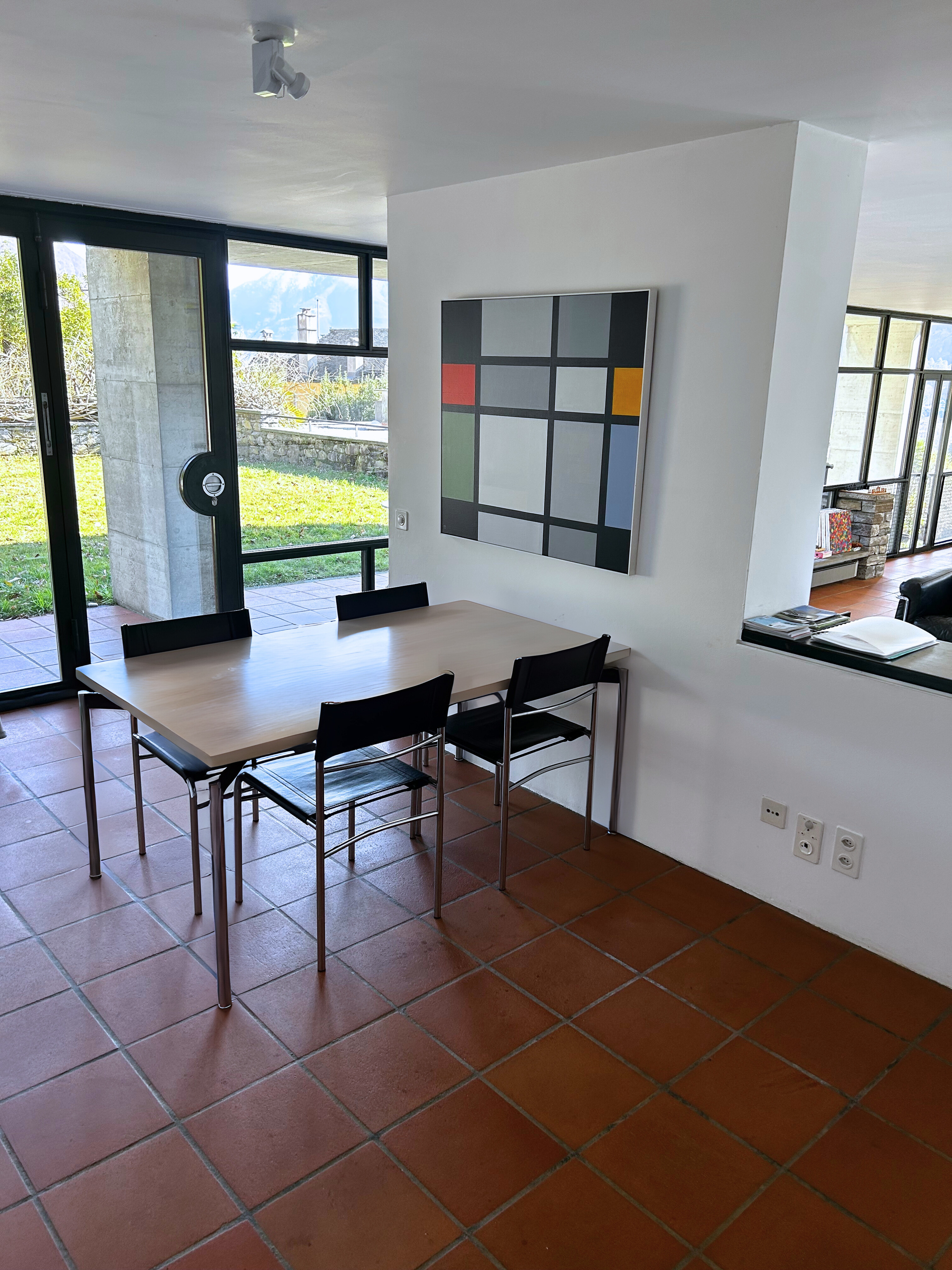 Gleich neben dem Wohnzimmer befinden sich der Essbereich für vier Personen und die angrenzende, gut ausgestattete Küche - beide mit Blick in den Garten und direkten Zugängen zur Terrasse. Über die Treppe gelangen sie zur zweiten Wohnebene. Auch hier offenbart sich die zurückhaltende Poesie Snozzis. Die vier Schlafzimmer und ein Aufenthaltsraum sind in dem für den Architekten typischen, fein komponierten Minimalismus gehalten. Zusätzlich gibt eine gemütliche Leseecke mit unzähligen Buchschätzen, in der Sie herrlich die Zeit an sich vorbeiziehen lassen können.