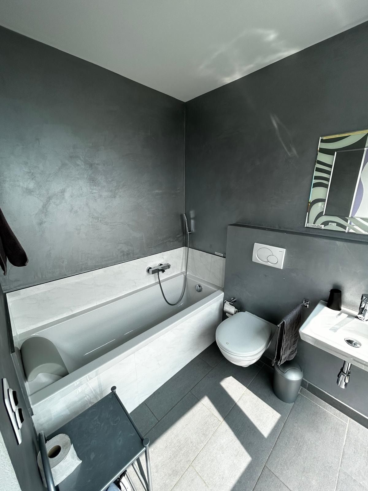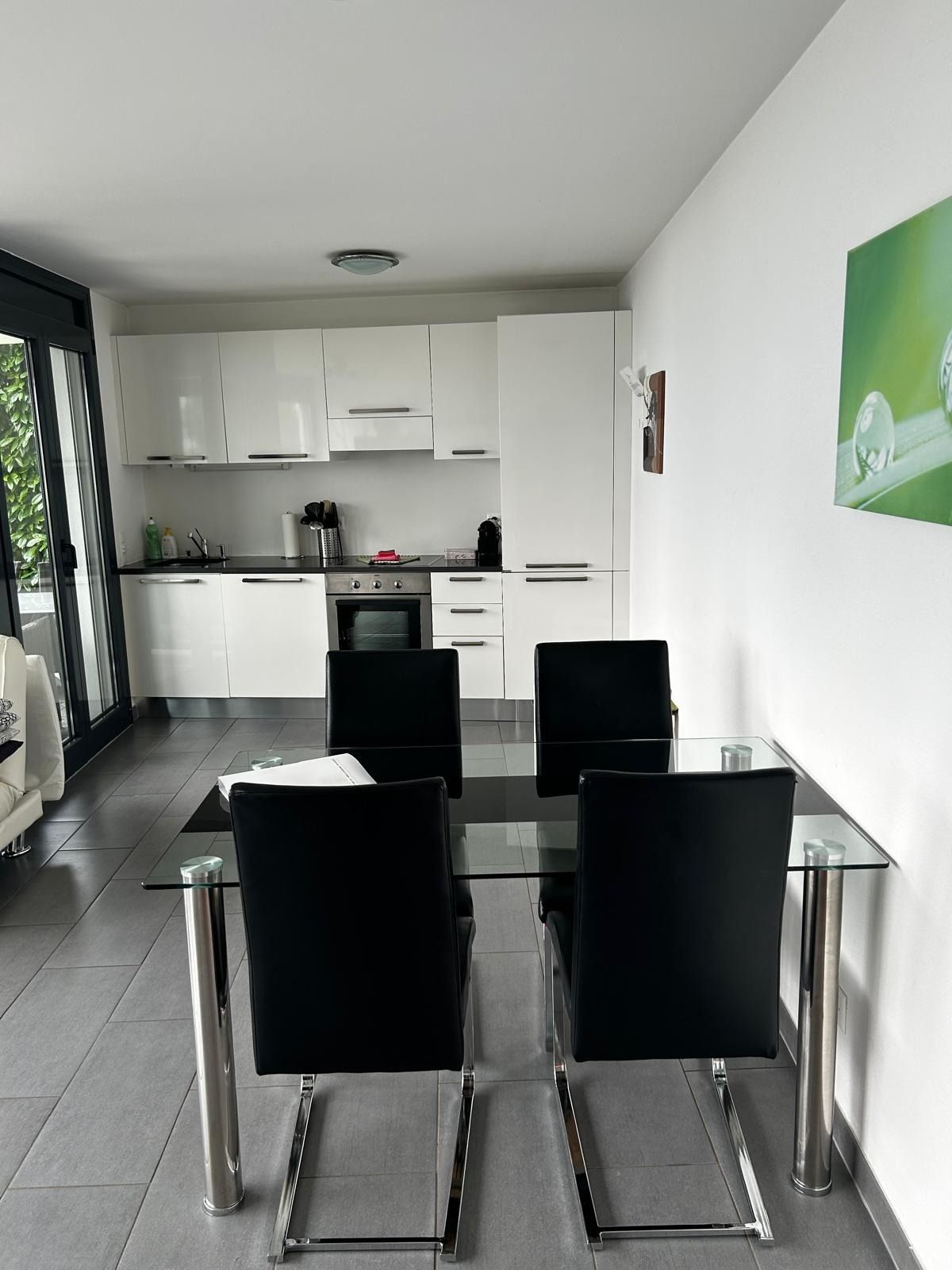 Die Wohnung ist wegen den Fenstern, welche bis zum Boden reichen, sehr hell und besticht durch großzügige, moderne Räume. Sie verfügt über ein Schlafzimmer mit eigenem Bad (Badewanne) sowie ein weiteres Schlafzimmer mit separatem Badezimmer (Dusche). Der offene Wohn- und Essbereich ist geschmackvoll eingerichtet und lädt mit einer gemütlichen Sitzecke sowie einem Flachbild-TV zum Entspannen ein. Die funktionelle Küche ist mit einer Geschirrspülmaschine, einer Kaffeemaschine und allen weiteren Annehmlichkeiten ausgestattet, die Ihren Aufenthalt noch angenehmer machen.