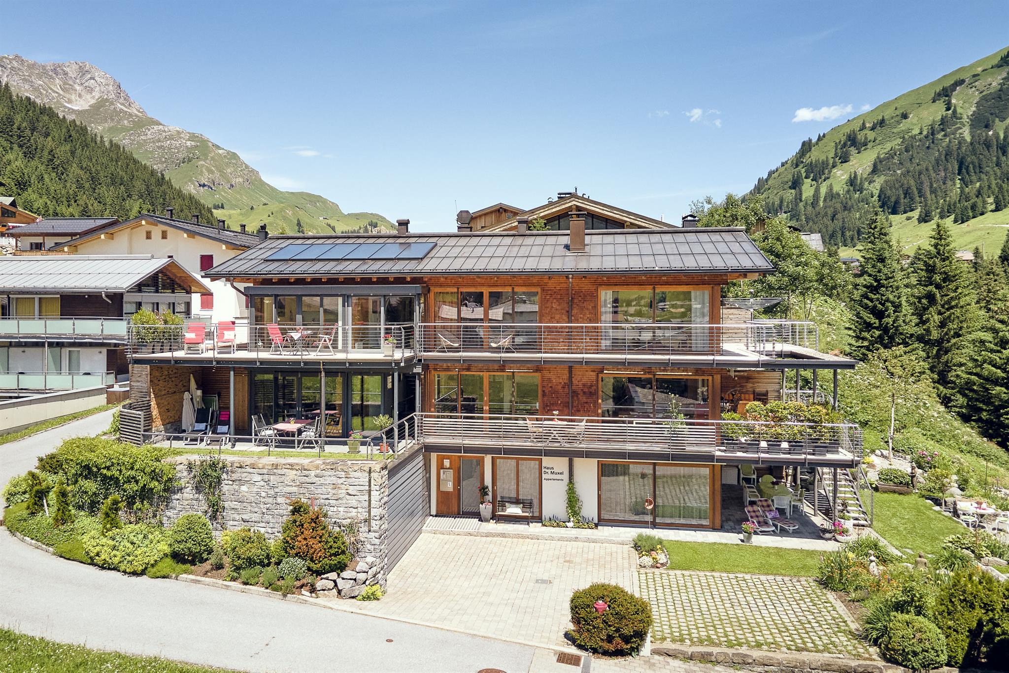 Das Haus Dr. Muxel wurde im modernen, alpinen Stil errichtet.
