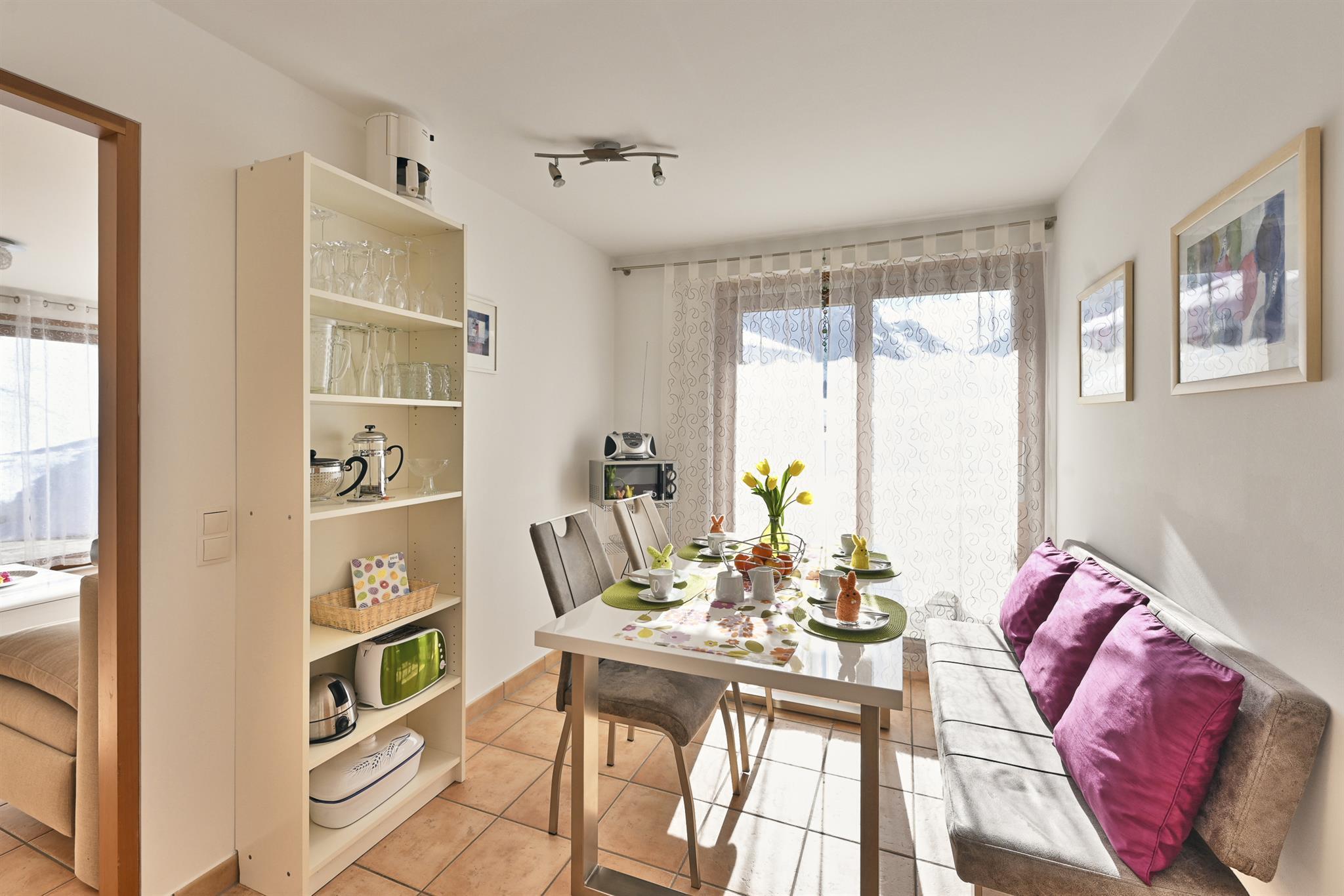 Was die Wohnung auszeichnet: Ein Schlafzimmer ist durch eine Schiebetür vom Wohn-/Küchenbereich abgetrennt, so dass Sie getrennte Schlaf- und Wohnbereiche haben.