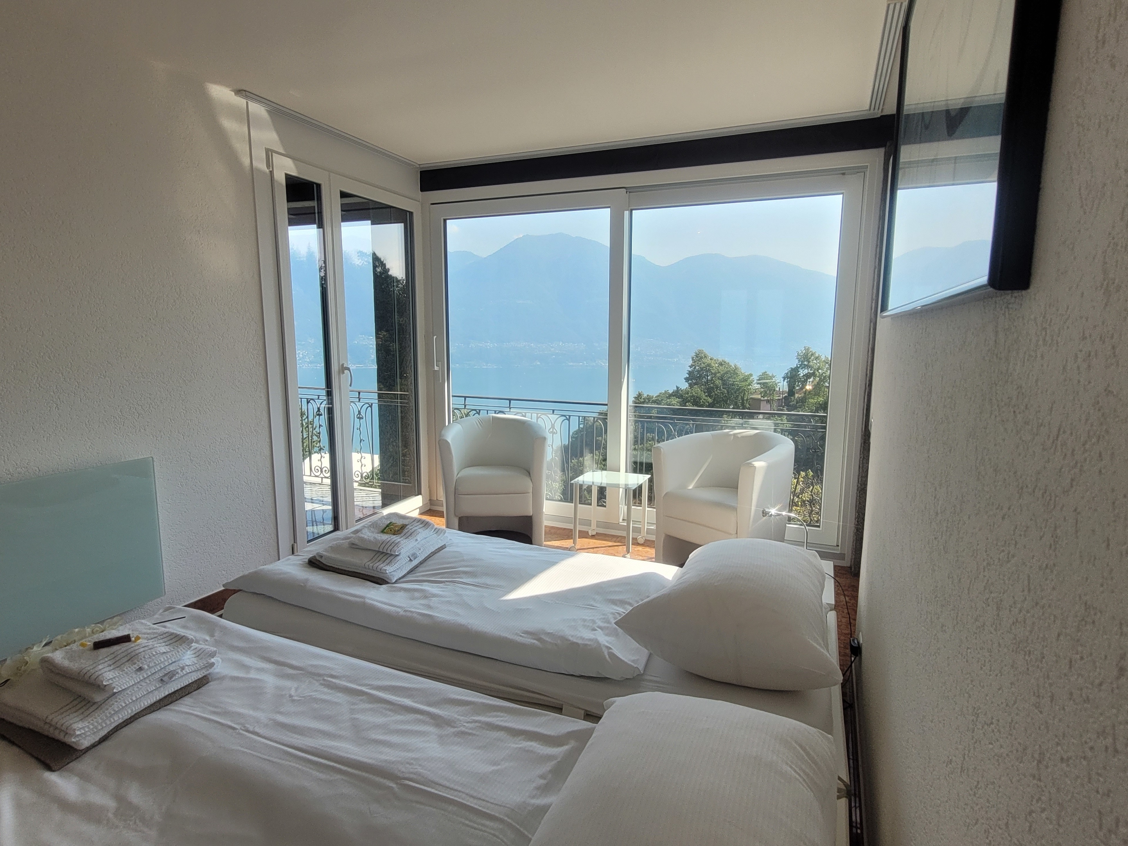 Brione sopra Minusio: Casa Moorea – Sonnenverwöhntes Tessiner Haus mit viel Komfort, Fasssauna, Hot Pot und einem atemberaubenden 180°-Seeblick – für 4 Personen plus Kleinkind – Hunde erlaubt!