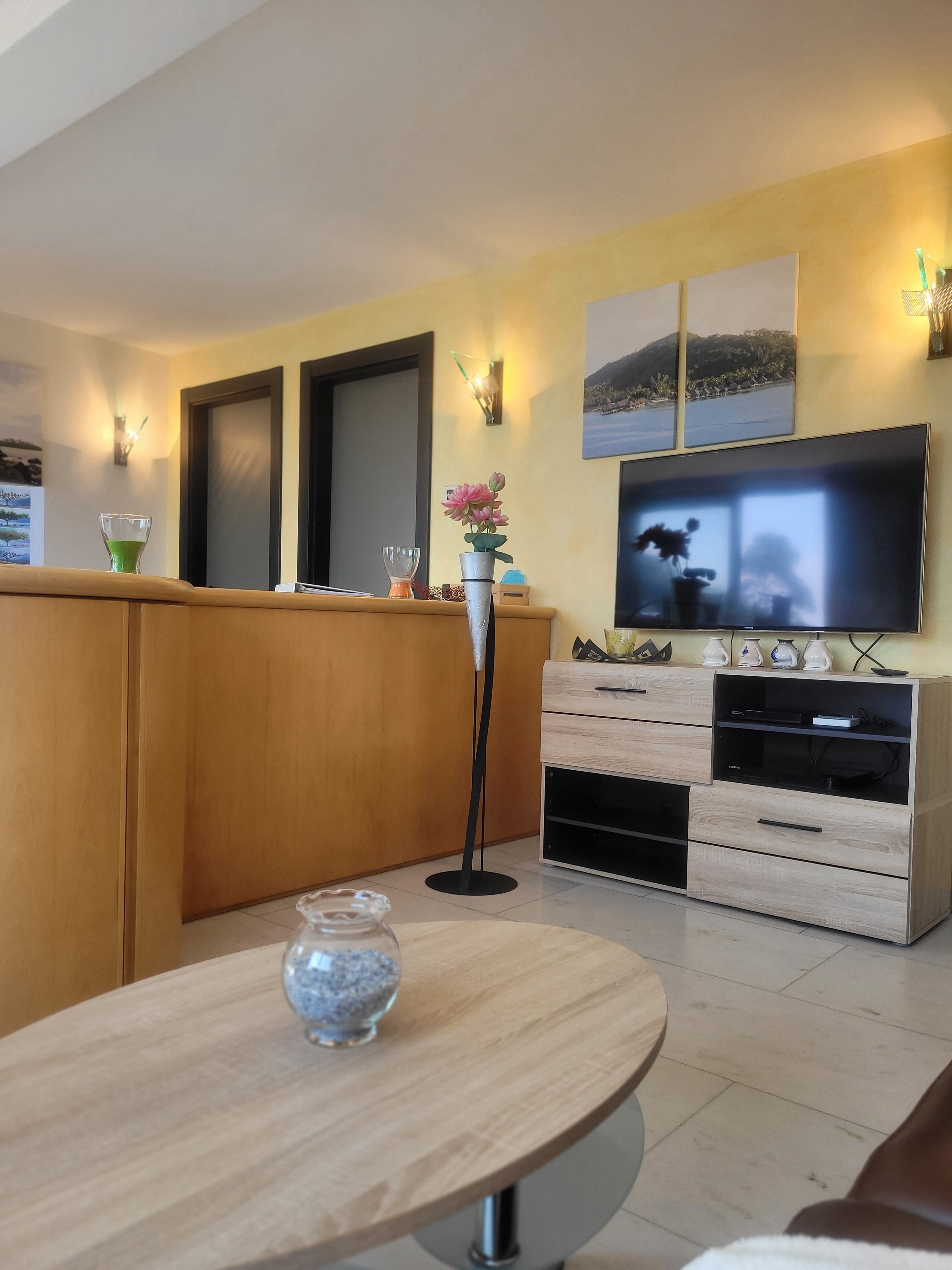 Für beste Unterhaltung ist ebenfalls gesorgt! Im Wohnbereich steht ein beeindruckender Flachbildschirm (140 cm!) mit Satelliten-Receiver und Smart-TV für Netflix, YouTube und mehr zu Ihrer Verfügung. Ein DVD-Gerät und natürlich Highspeed-W-LAN sind ebenfalls vorhanden. Durch einen offenen Rundbogen gelangen Sie vom Wohnbereich direkt in die Küche, in der Sie neben einem gemütlichen Kamin alles finden, um sich und Ihre Lieben kulinarisch zu verwöhnen.