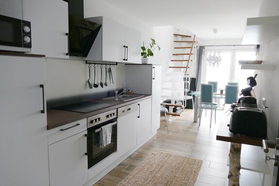 Genießen Sie entspannte Stunden in der gemütlichen Wohnküche, die perfekt ausgestattet ist und zum gemeinsamen Kochen und Verweilen einlädt. Oder Sie entspannen auf dem Balkon oder im Garten mit Blick auf die Natur. Unsere harmonische Ferienwohnung mit 65 Quadratmetern ist ideal für Familien oder Paare, die dem Alltag entfliehen möchten.