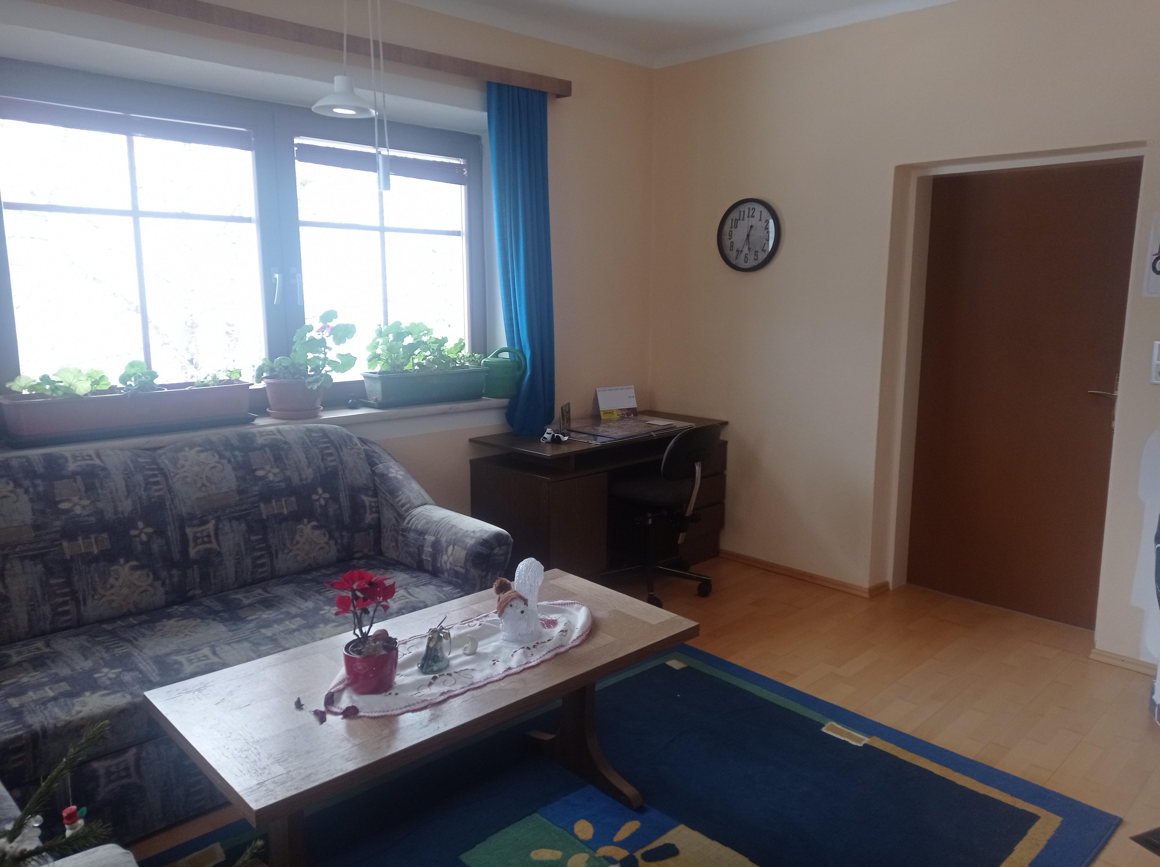 Die Räumlichkeiten befinden sich im 1. Stock. Man kann sie über die Stiege erreichen oder auch Barrierefrei über den Hintereingang. Vor dem Schlafzimmer befindet sich ein Wohnzimmer mit Kachelofen der im Winter wohlige wärme bietet.