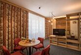 Für Familien und Freunde sind unsere serviced Hotelapartments genau richtig. Mit eigener Wohnküche, Esstisch und separatem Schlafzimmer. Im Wohnbereich befinden sich zwei vollwertige Betten.