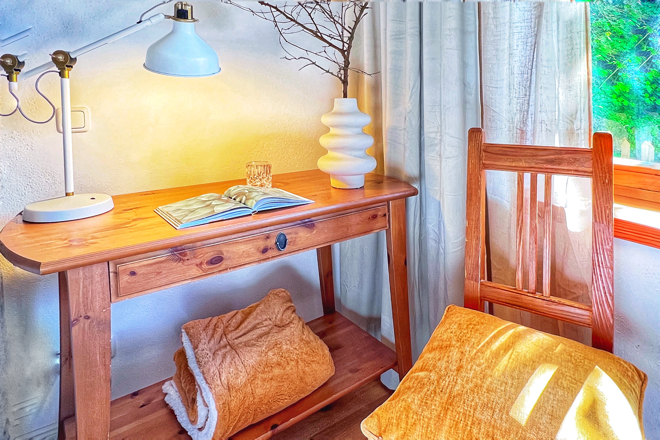 Alle 3 Schlafzimmer sind mit Boxspringbetten 160 x 200 ausgestattet.  In einem der Schlafzimmer befindet sich in einen weiteres Einzelbett in Überlänge 90 x 220 und  ein Arbeitsplatz.  Alle Betten  verfügen über Qualitätsmatratzen . Die Bettwäsche ist in Komfortgröße 155 cm x 220 cm genäht. Auf Wunsch kann ein Schlafraum mit  Kinderreisebett oder  Matratzenbett ergänzt werden.