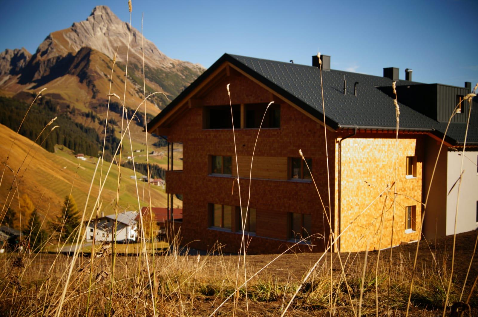 auf einer kleinen Anhöhe gelegen bieten wir Ihnen einen traumhaften Ausblick über das Dorf Warth und seine markanten Felsriesen! Bei uns können Sie direkt vor der Haustüre in die Ski- und Wanderwelt einsteigen und das ganz ohne Bus oder Auto!