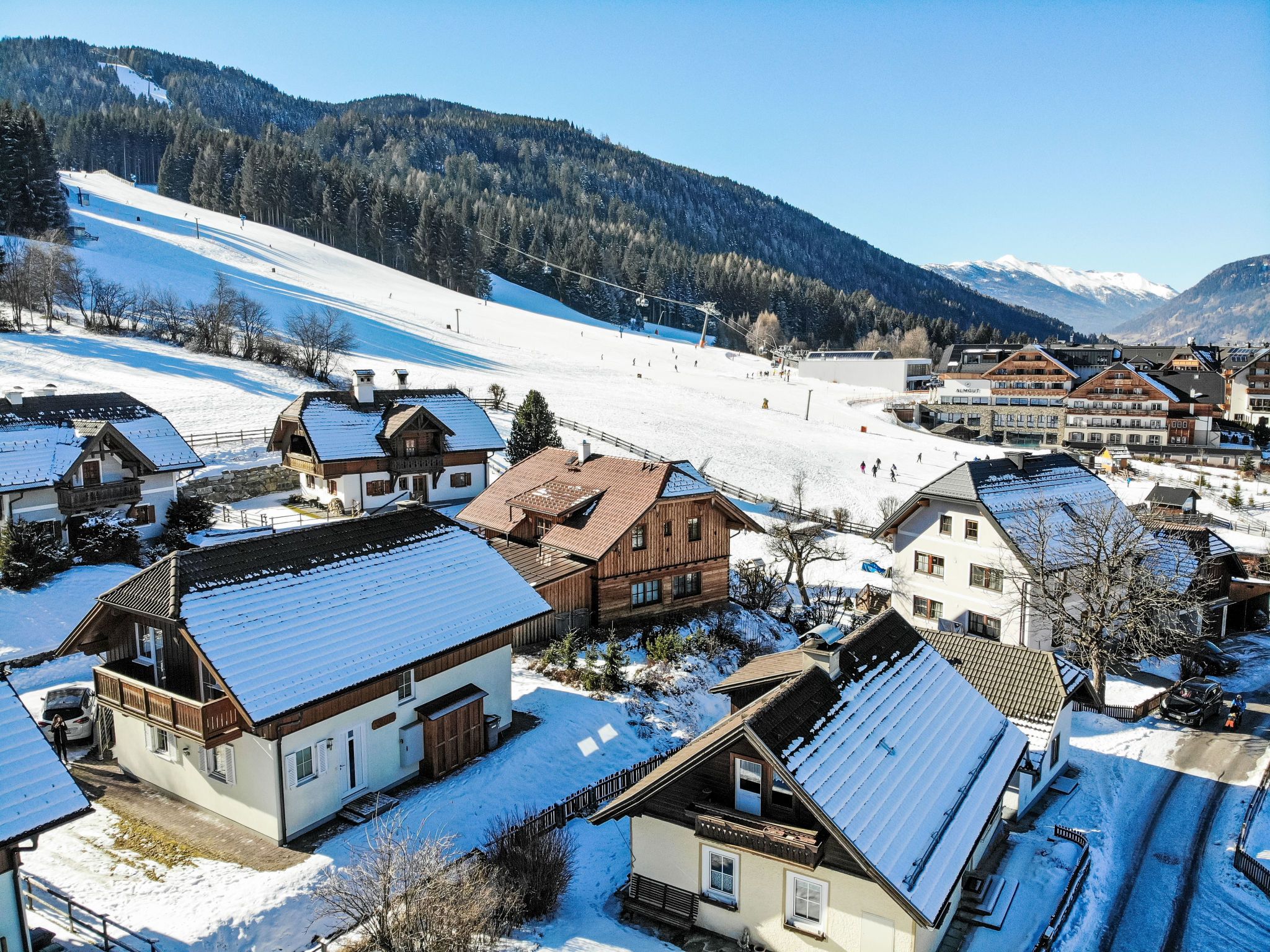 Nicht weit von der Talstation des Skigebietes Aineck - Katschberg (16 Skilifte, 70 km Pisten). Auch das schneesichere Skigebiet Obertauern ist nur 25 Autominuten entfernt. Bis Ende März noch super Pistenverhältnisse. Gemütliches, komfortables Chalet Astrid, auf 2 Stockwerken. Im Ortsteil St. Margarethen, 200 m vom Skigebiet. Zur Alleinbenutzung: kleiner Garten. Terrasse, Gartenmöbel. Im Hause: Sauna, Sprudelbad, Infrarotwärmekabine, Zentralheizung, Waschmaschine, Wäschetrockner. Parkplatz. Lebensmittelgeschäft 600 m, Restaurant, Bar 200 m, Bushaltestelle Karnersiedlung 3.7 km. Golfplatz (27 Loch) 2 km, Minigolf 5 km, Reitstall 1 km, Luftseilbahn, Skisportanlagen, Skiverleih 150 m, Schlittelbahn, Langlaufloipe 300 m. Nahe gelegene Sehenswürdigkeiten: Burg Mauterndorf 10 km, UNESCO Biosphärenpark Lungau. Bekannte Seen in der Umgebung sind gut erreichbar: Prebersee 13 km. Wandergebiete: Katschberg/Aineck.