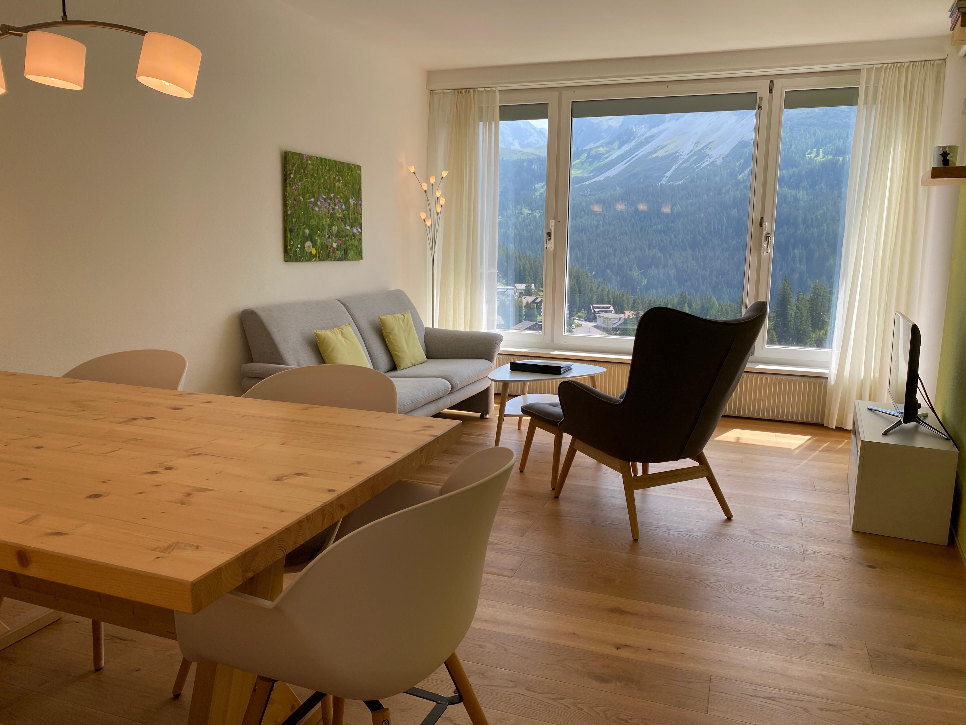 Die geräumige und renovierte 4.5-Zimmer-Wohnung befindet sich im Erdgeschoss eines Wohngebäudes an ruhiger Lage im Zentrum von Arosa. Die Wohnung hat 2 Schlafzimmer, 1 Kinderspielzimmer, 1 Badezimmer, ein Wohn- und Esszimmer sowie eine separate Küche und bietet Platz für 4 Erwachsene und 1 Kind (bis 6 Jahre). Der spektakuläre Bergblick vom Balkon ist einer der besten in Arosa. Die Bushaltestelle sowie Einkaufsmöglichkeiten an der Hauptstrasse sind in unmittelbarer Nähe der Wohnung. Es gilt ein absolutes Rauchverbot in der Wohnung sowie auf dem Balkon!!