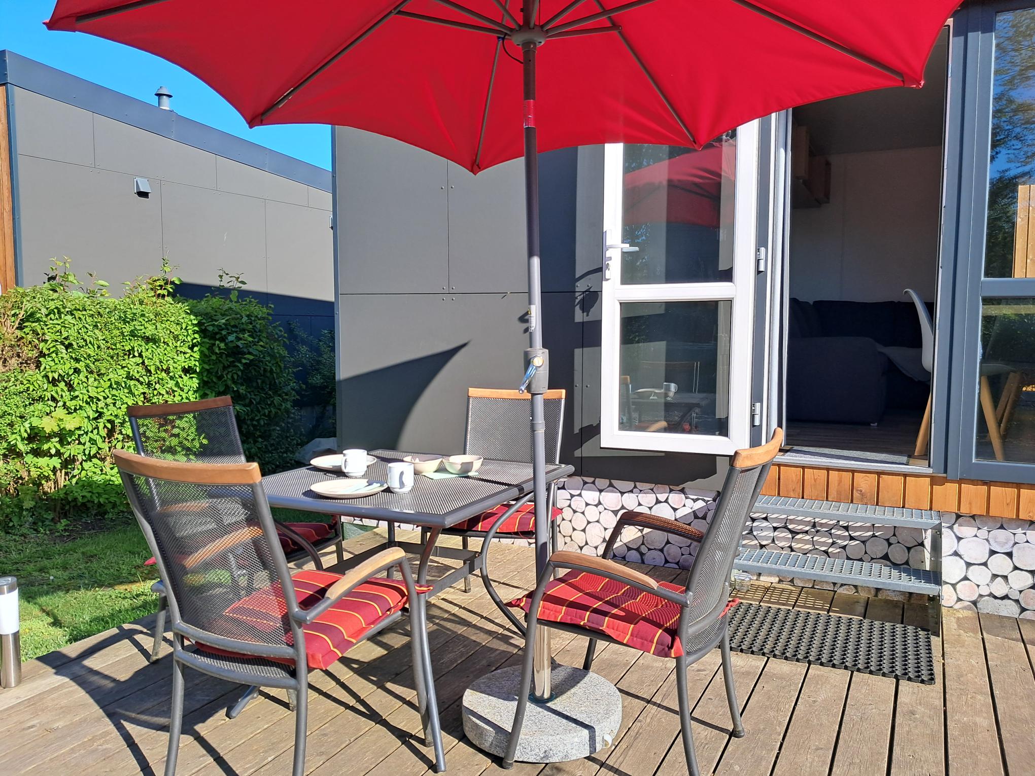 Auf unserer Holzterrasse können sie den tollen Urlaubs Tag bei einem Glas Wein ausklingen lassen.
