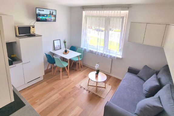 Hallo und herzlich willkommen im schönen Reisenberg! Unser neu renoviertes Apartment eignet sich ideal für Familien mit Kindern, Einzelpersonen und für Remote-Arbeit (WIFI vorhanden). Von unserem Apartment aus erreichen Sie viele spannende Ausflugsziele mit dem Auto in ca. 20 bis 30 Minuten: - Wien erkunden - Am Neusiedler See baden - In der SCS oder im Designer-Outlet Parndorf shoppen - Mit Ihren Kindern den Family Park St. Margarethen besuchen Die 45 qm große Wohnung bietet: - Ein Schlafzimmer - Eine Wohnküche mit aufklappbarem Bett, vollwertiger Küchenzeile und gemütlicher Eckbank - Getrennte Bad- und WC-Bereiche Nutzen Sie unser kostenfreies WLAN zur Planung Ihrer Ausflüge oder entspannen Sie vor unserem Smart TV, wenn Sie einfach mal nichts tun möchten. Wir freuen uns darauf, Sie in Reisenberg begrüßen zu dürfen!