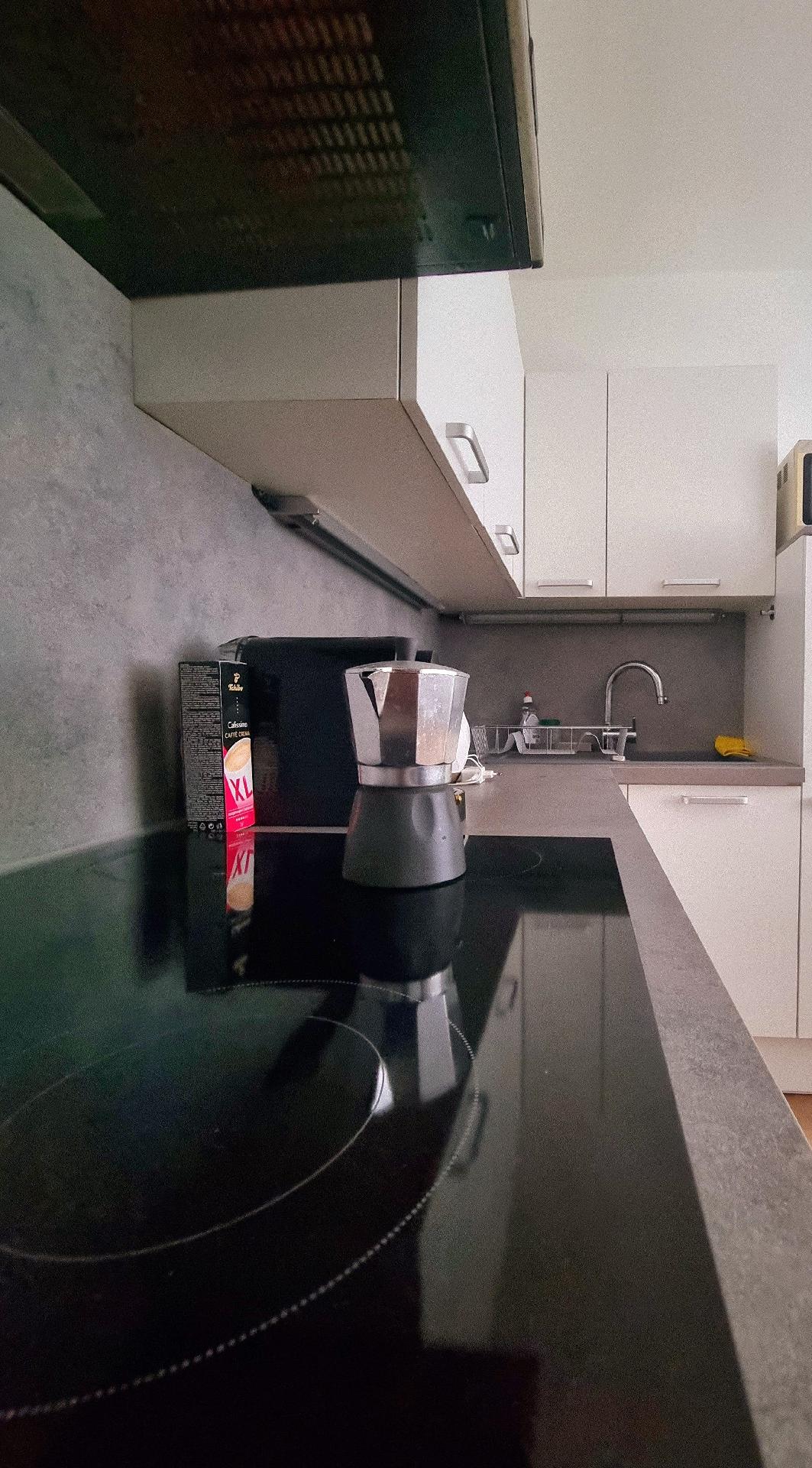 Kochen: Backofen; Ceranherd; Espressomaschine; Gefrierfach; Kaffekapselmaschine; Kühlschrank; Mikrowelle; Spülmaschine; Tiefkühlschrank; Wasserkocher