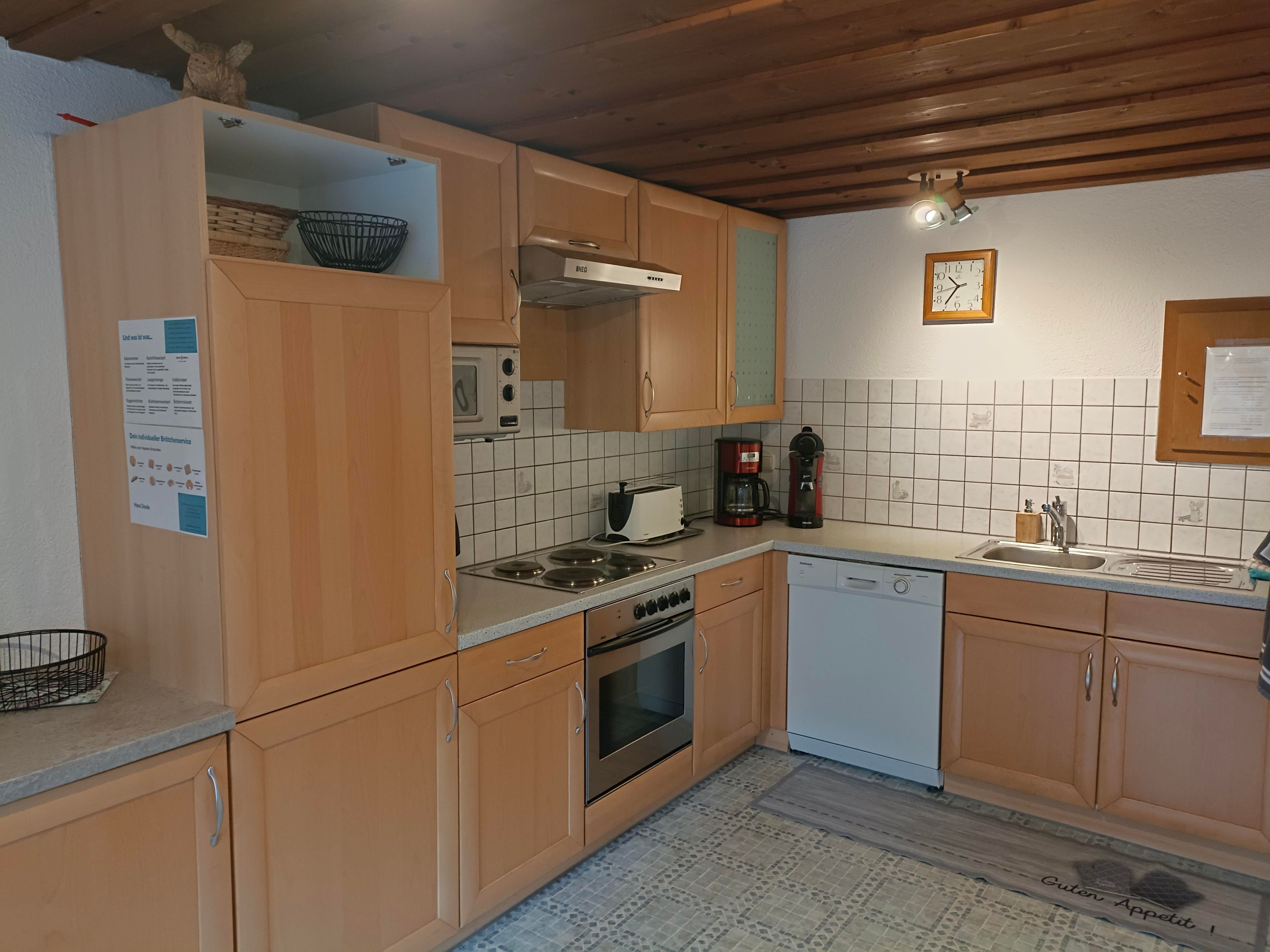 Große Wohnküche mit Kühlschrank,Tiefkühlfach,Spüllmaschine,,Backrohr,Toaster,Kaffeepadmaschine, gratis Wlan, Sat-TV, Couch, Nichtraucher,