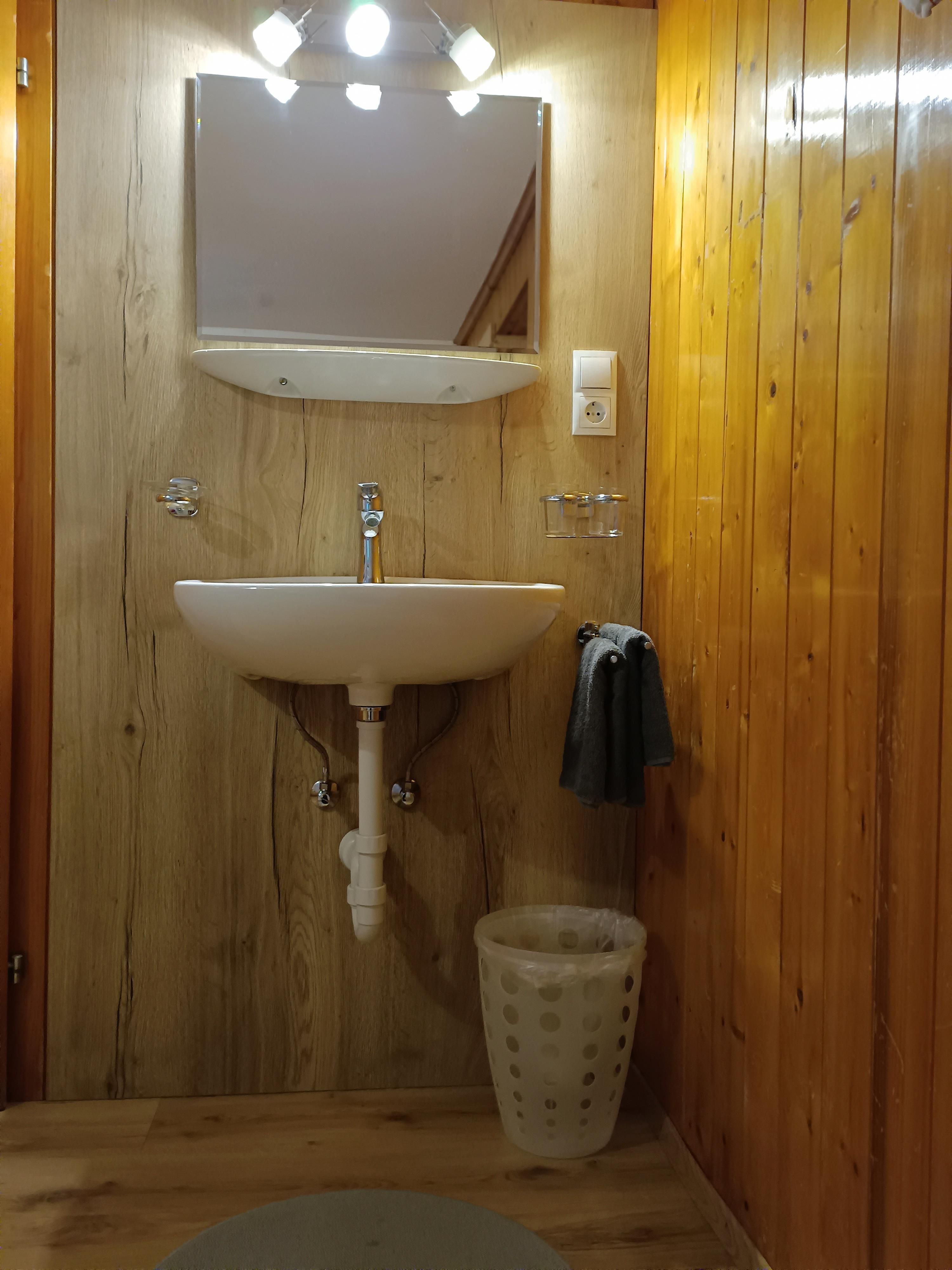 Doppelzimmer mit Massivholz ein Waschbecken, kleine Dusche/ mit WC mit Dachschräge,