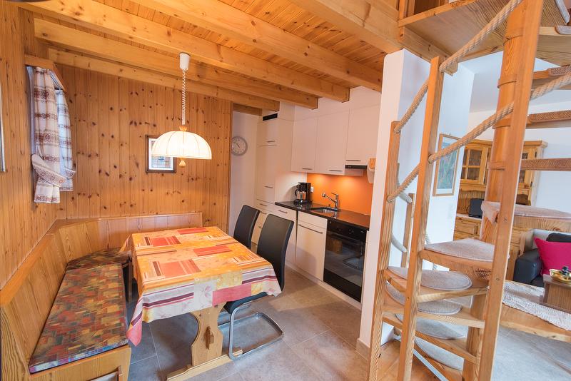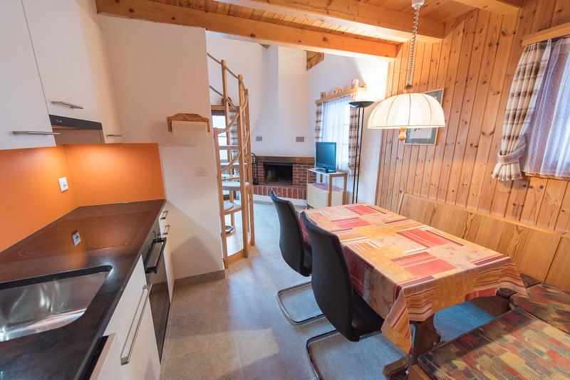 Wohn-/Esszimmer mit Sitzgruppe, Cheminée und Essecke. Kostenloser WLAN. Küche:
