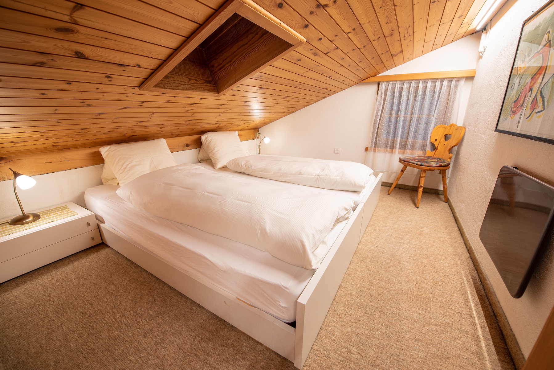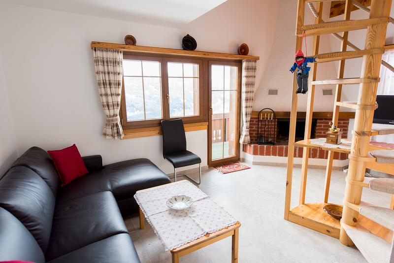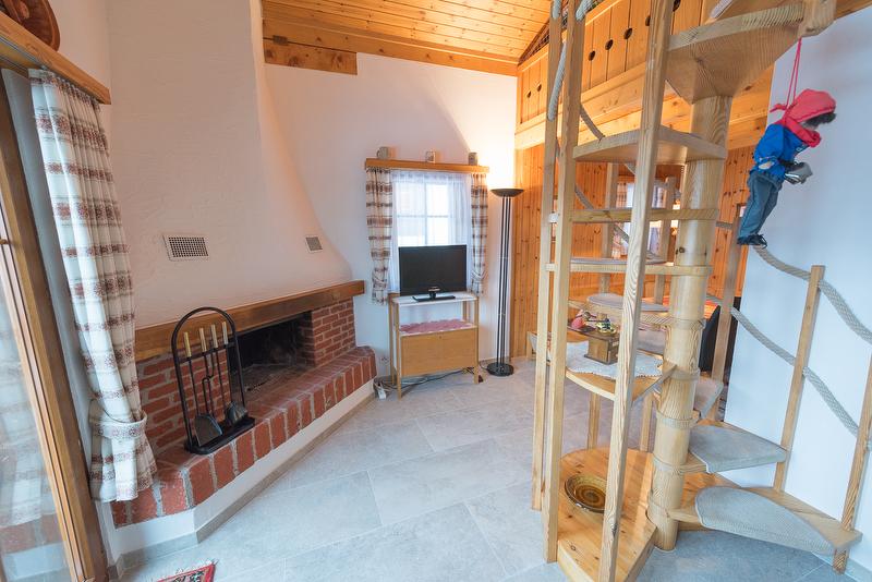 Ein Doppelzimmer, zwei Betten auf der Galerie. Wie auf dem Foto ersichtlich, befindet sich das Zimmer unter einer Dachschräge. (1.65 m hoch). Wohnzimmer:
