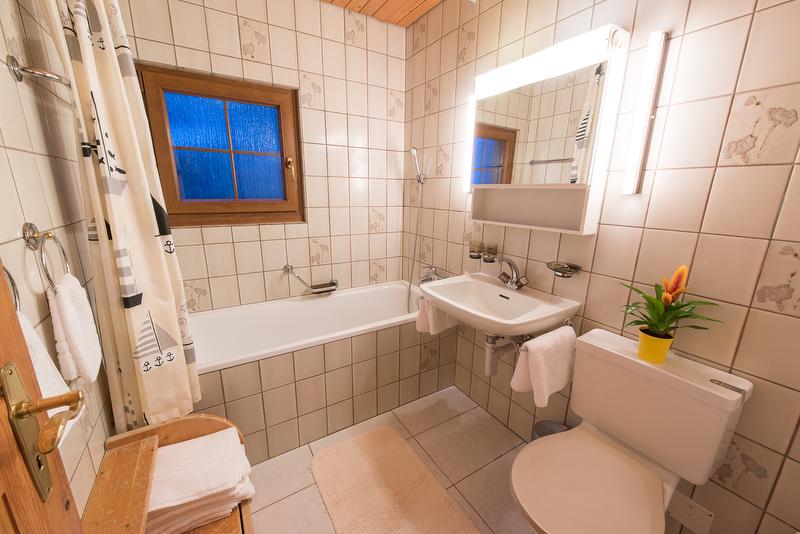 Bad/WC. In der Casa Panorama befinden sich eine Waschmaschine und ein Trockner, beide dürfen Sie ohne Aufpreis mitbenützen.