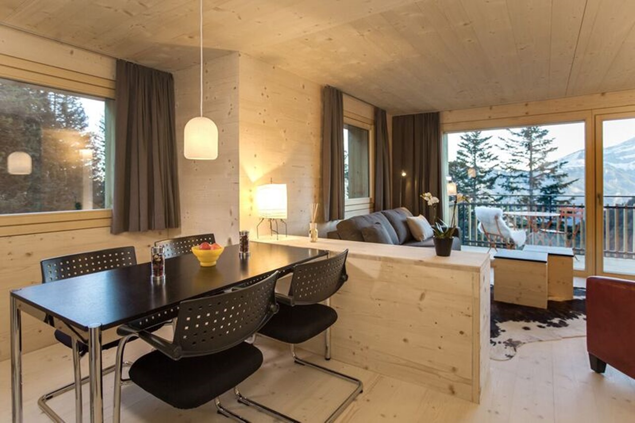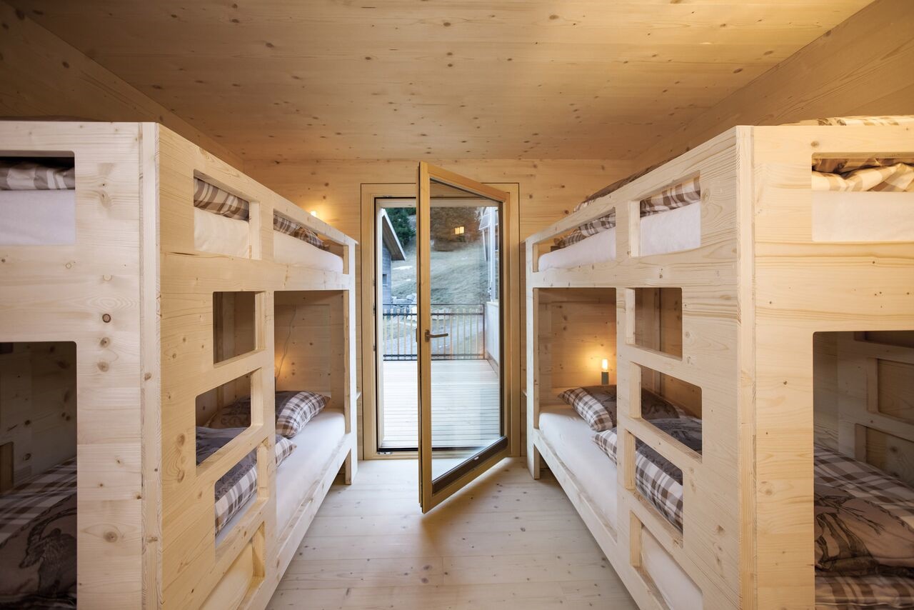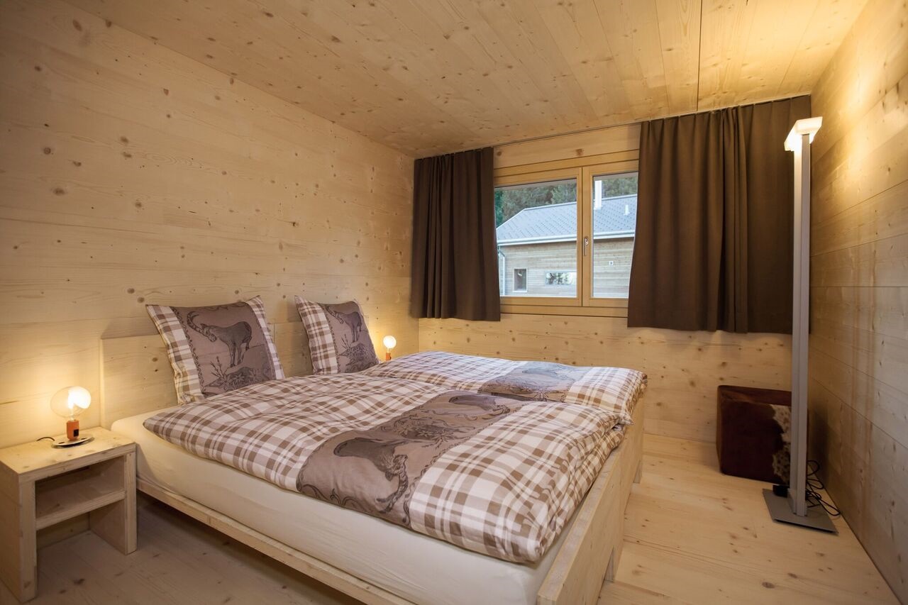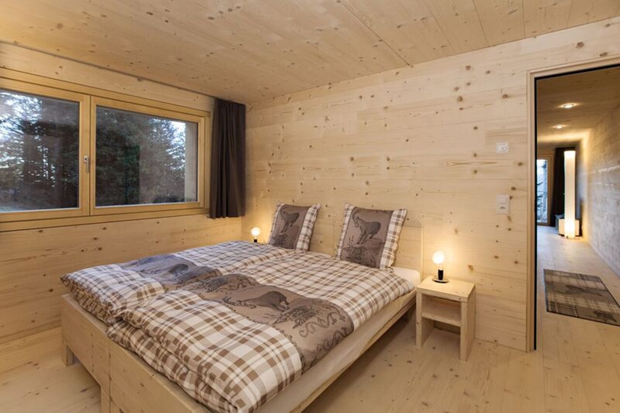 Das Wohnzimmer ist mit TV und Internet ausgestattet, das Sofa kann zu einem französischen Bett mit bequemer Matratze umgebaut werden. Im Erdgeschoss steht ein Ski-und Schuhraum mit eigenem abschliessbaren Kasten zur Verfügung.