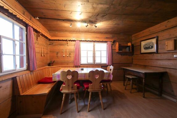 Das Maiensäss bietet Platz für 4-5 Personen. Es verfügt über eine Küche, eine Stube, ein Schlafzimmer mit 2 Kajütenbetten (die 5. Matratze kann auf den Stubenboden gelegt werden). Eine Waschgelegenheit sowie ein Trocken-WC befinden sich im Haus. Im Keller befindet sich ein Vorratsraum mit verschiedenen Getränken und Esswaren zum Selbskostenpreis. Geheizt wird mit einem Holzofen im Stübli. Alle Räume sind beleuchtet. Kochgelegenheit mit Strom oder auf dem Holzofen. Es hat fliessend kaltes Wasser in der Küche. Im Hof befindet sich ein zusätzliches WC (Plumpsklo).