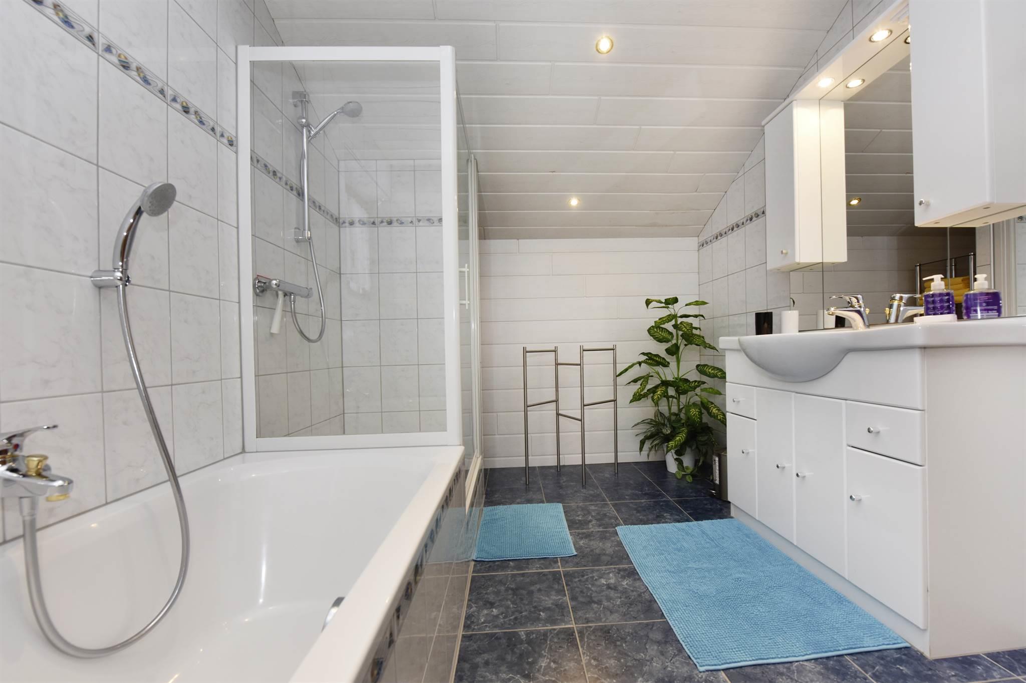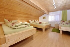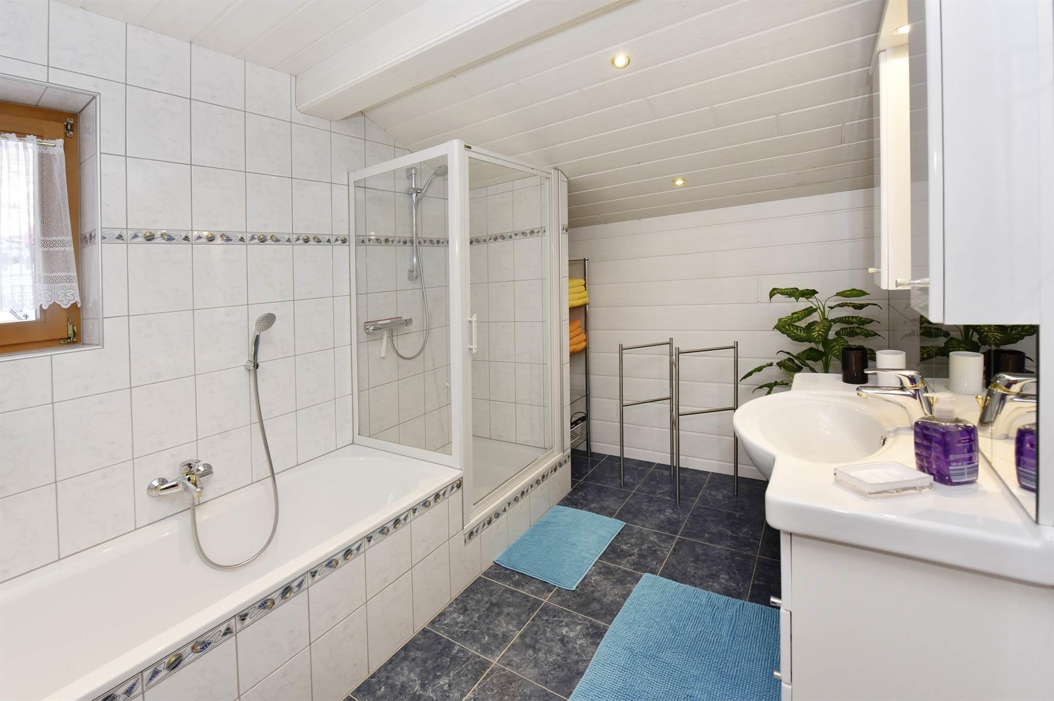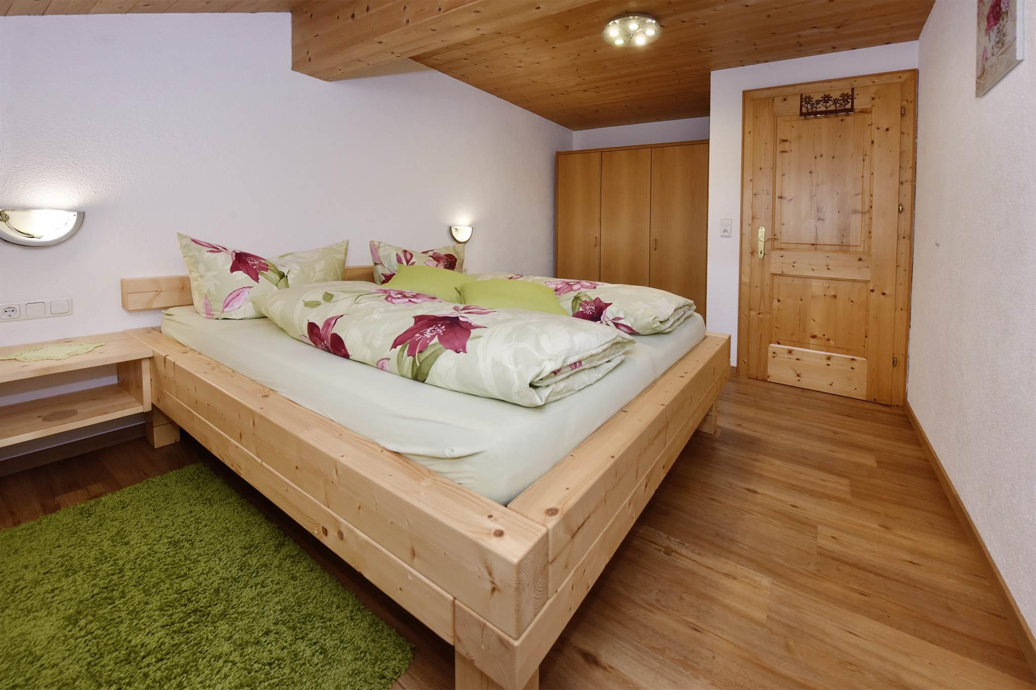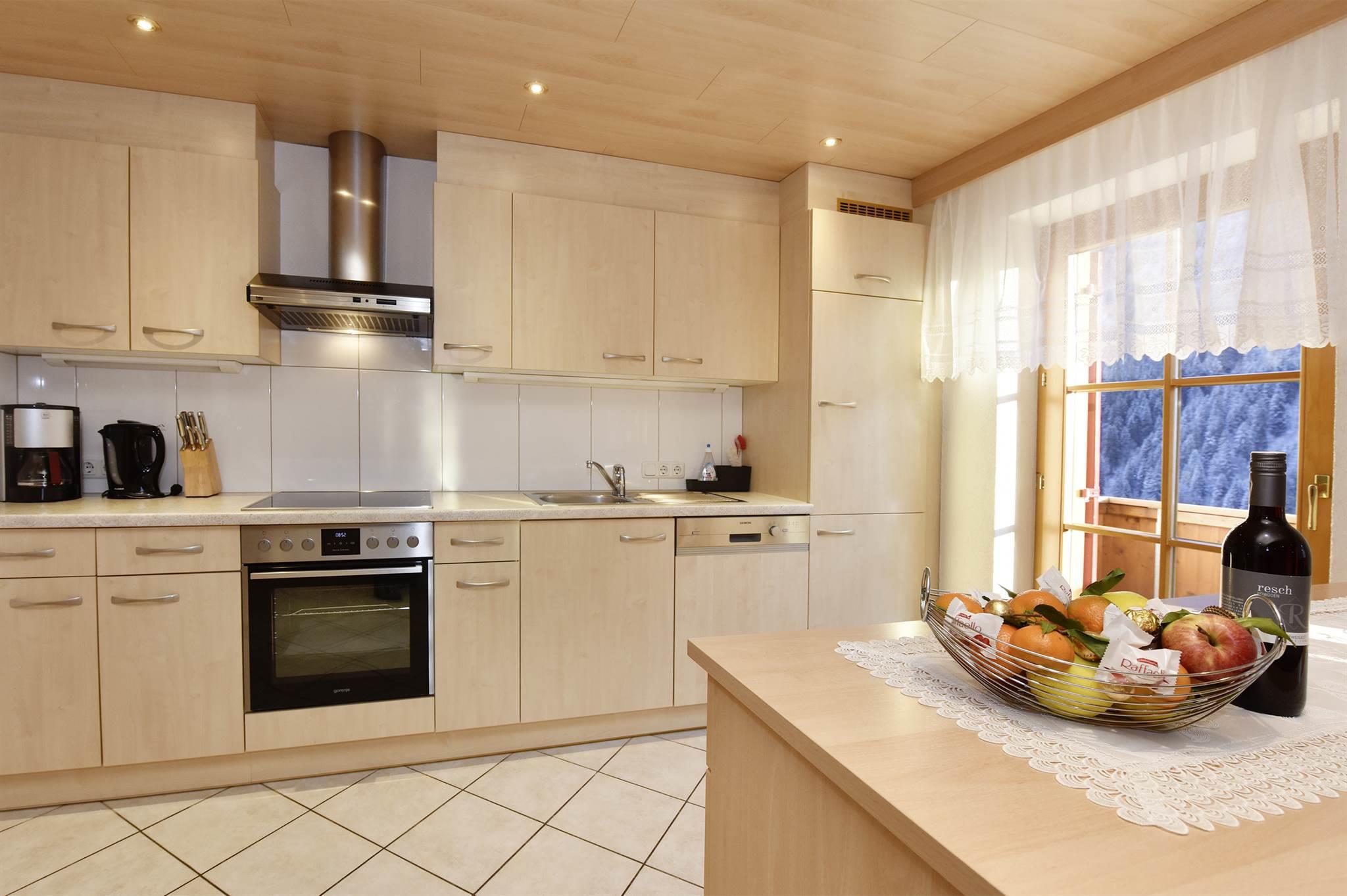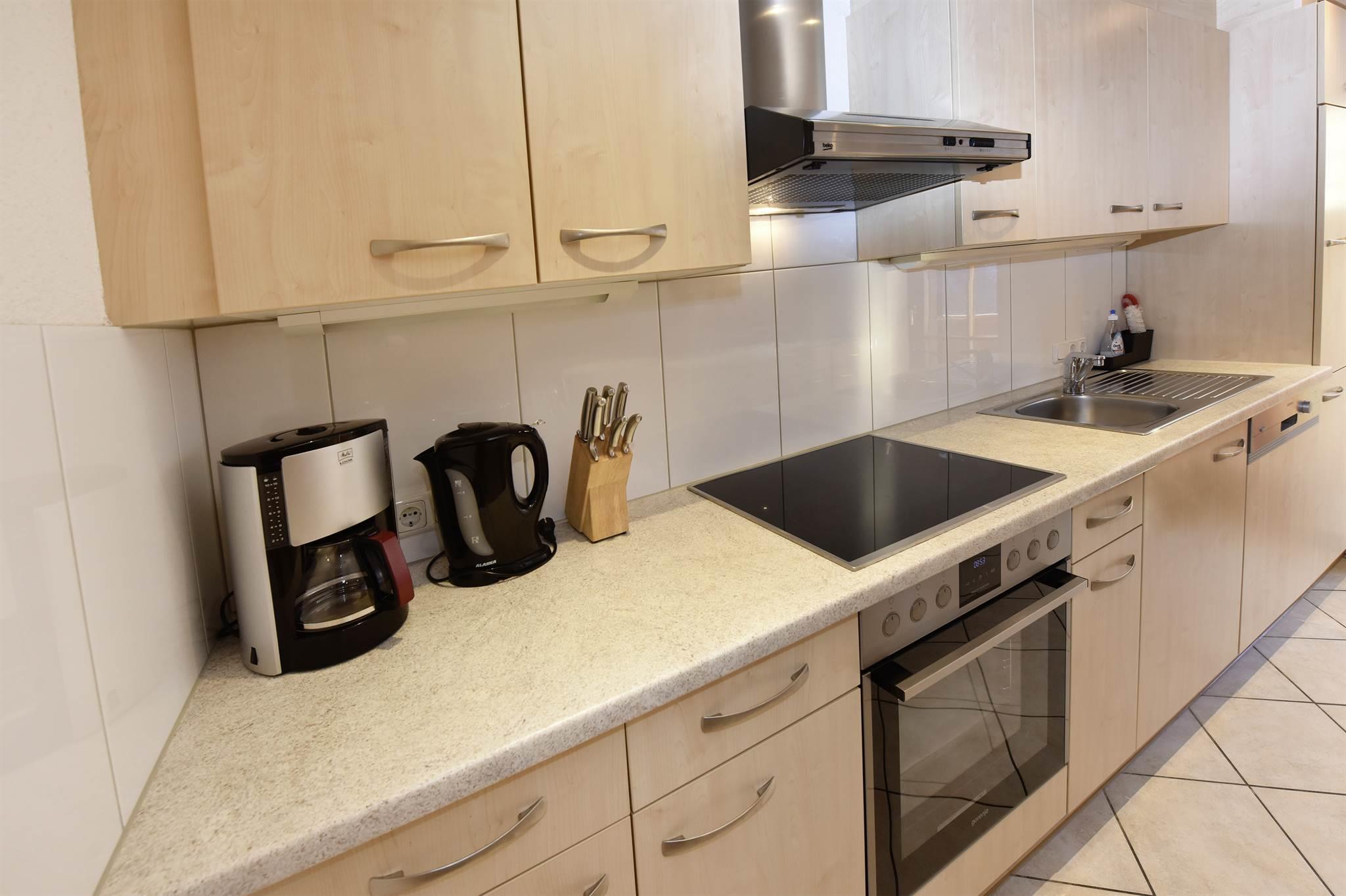 Die Wohnung verfügt über 2 Schlafzimmer, 1 Doppelzimmer und ein Vierbettzimmer mit einem Doppelbett und zwei Einzelbetten. Die Wohnküche ist eingerichtet mit einer Sitzecke, Küchenzeile mit Vierplattenherd und Backofen, Wasserkocher, Toaster, Filterkaffeemaschine und Mikrowelle. Das Badezimmer ist ausgestattet mit einem Waschbecken, Dusche und Badewanne. Das sep. WC befindet sich auf dem Gang.