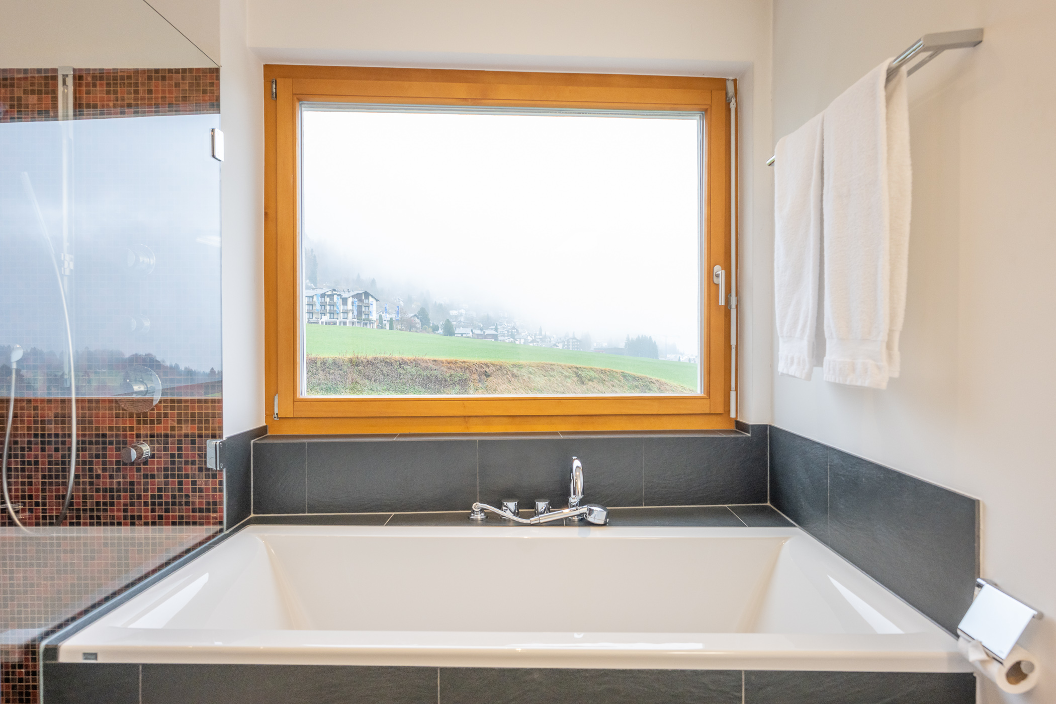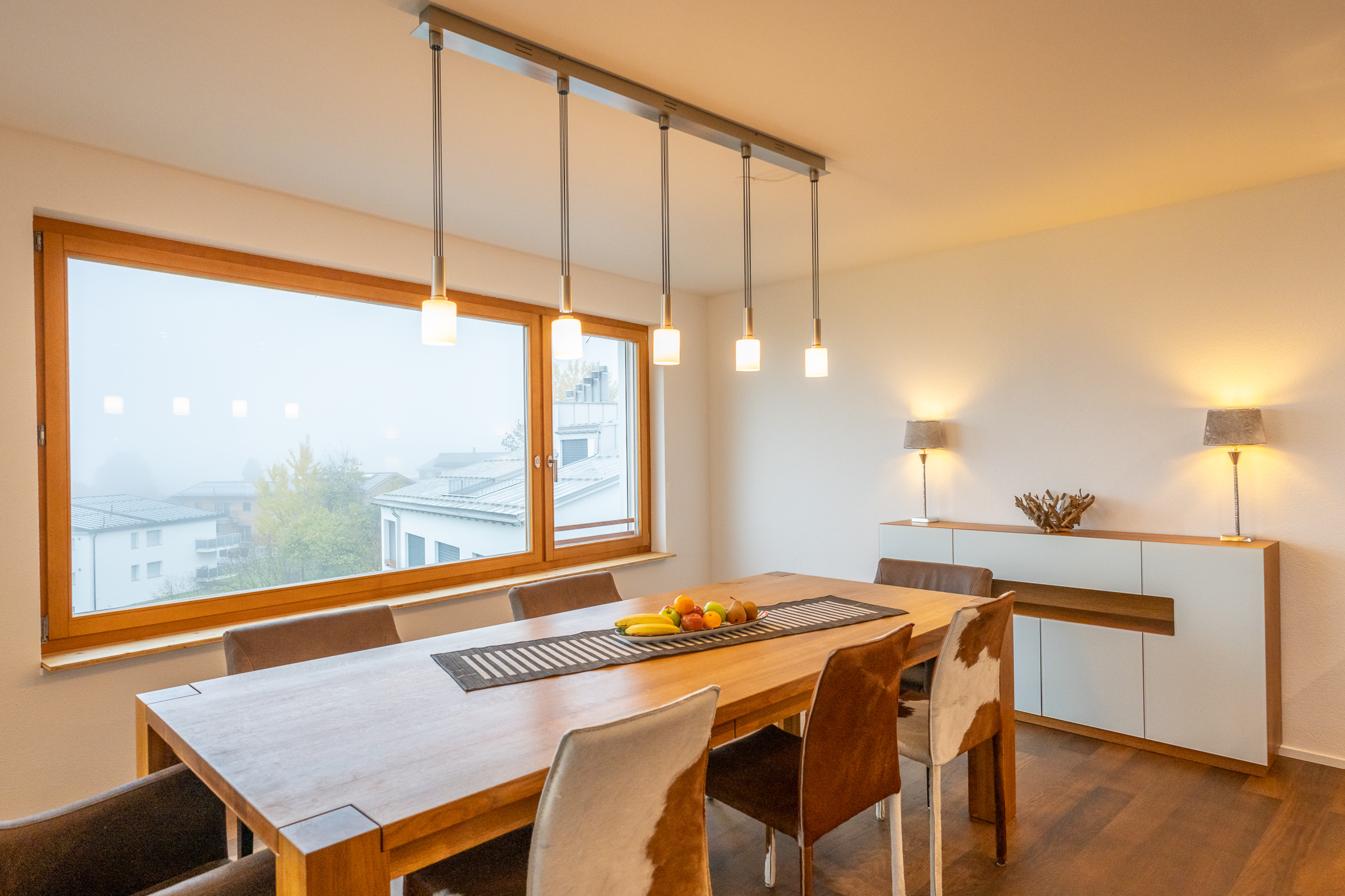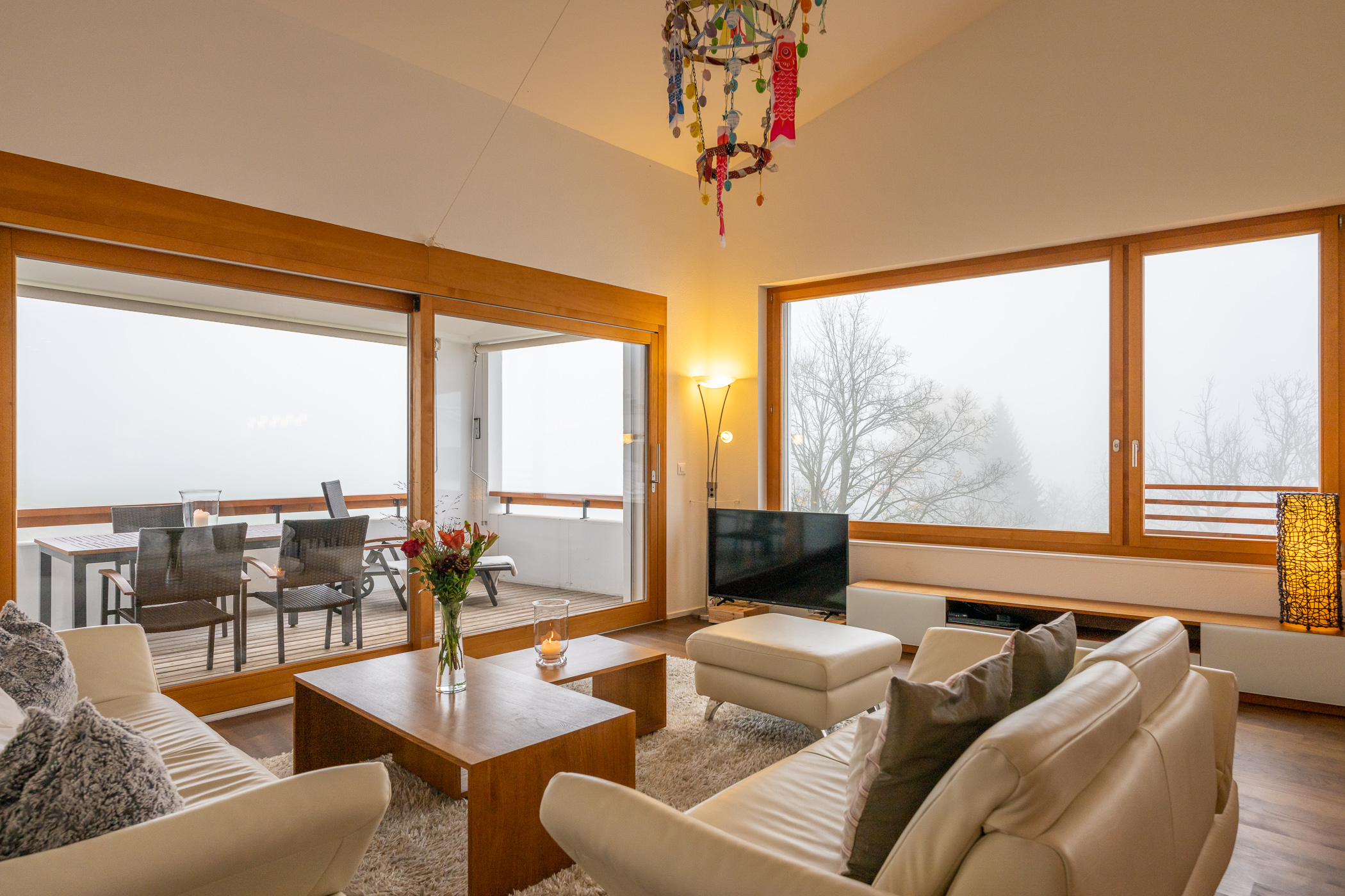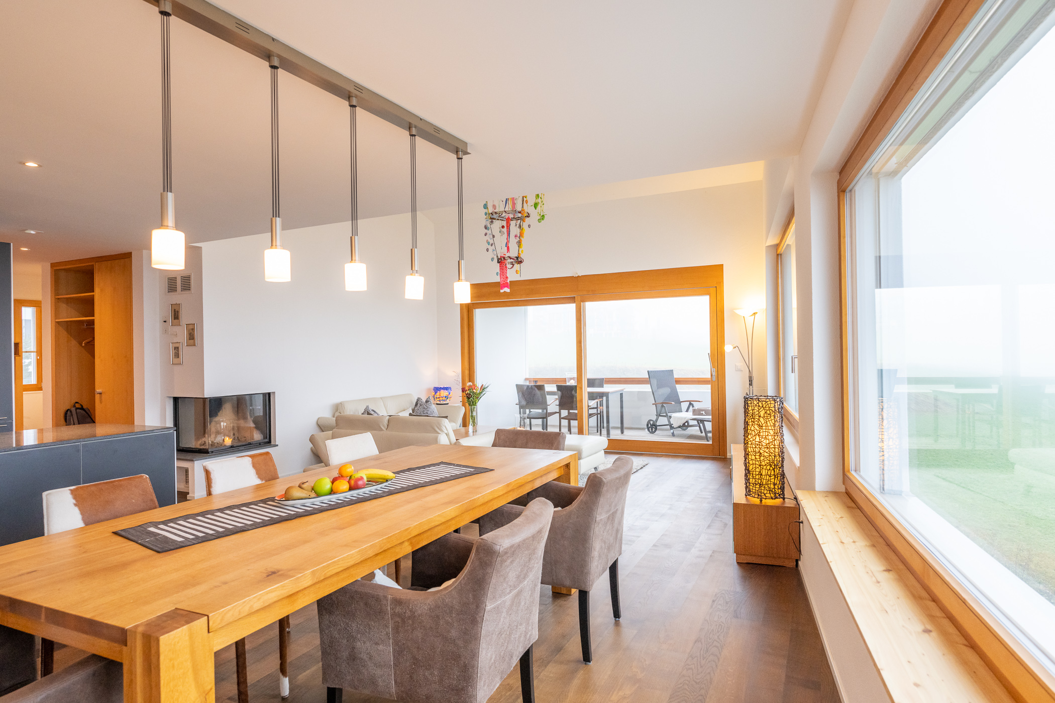 Herzlich willkommen in Ihrer Ferienwohnung Panoramablick. Das 3.5-Zimmer Apartment mit 129 qm befindet sich in Flims Dorf, im 2. OG eines Mehrfamilienhauses in einem ruhigen aber sehr gut angebundenem Wohnquartier in unmittelbarer Nähe zu Restaurants und Einkaufsmöglichkeiten. Der Shuttelbus mit Anschluss zu den Flimser Bergbahnen oder nach Bargis und die Postautostation ist nur 130m entfernt und zu Fuss bequem erreichbar. Das Apartment verfügt über ein Schlafzimmer mit Doppelbett und Ensuite Bad mit Badewanne, Dusche und Regenwalddusche, WC und Lavabo sowie einem Schlafzimmer mit zwei Einzelbetten. In diesem Zimmer gibt es eine Auszugsleiter über diese man in ein ca. 10qm grosses Galerie-Dachzimmer gelangt. Dieser Bereich mit gemütlichem Sofa und Tv kann auch als Spielraum genutzt werden wird aber nur grösseren Kindern und/oder Erwachsenen empfohlen, da dieser eben nur durch die Leiter zu erreichen ist. Zusätzlich steht Ihnen im Apartment ein weiteres Bad mit Dusche, Wc, Lavaboo sowie einer Waschmaschine und einem Trockner zur Verfügung. Das Wohnzimmer mit angrenzendem Balkon nach Süd-Osten ausgerichtet, lädt zu gemütlichen Abenden ein und besticht durch seine hohen Decken und die Panoramafenster, welche eine herrliche Sicht auf die umliegende Natur geben. Der dazu gehörige Essbereich und die offene Küche ausgestattet mit Herd, Backofen mit integrierter Mikrowelle, Geschirrspüler und Nespresso Kaffeemaschine, runden das Wohlfühlerlebnis ab. Bitte beachten Sie das der Kamin nicht genutzt werden kann. Ein Ski- und Veloraum steht Ihnen zur gemeinschaftlichen Nutzung im Untergeschoss zur Verfügung. 1 Tiefgaragenparkplatz, WLAN und Nebenkosten (Heizung, Strom, Wasser) sind inbegriffen. Bett- und Frotteewäsche, die Endreinigung sowie alle Taxen und MwSt. sind ebenfalls im Endpreis enthalten. Das Rauchen ist nicht gestattet und Haustiere sind nicht erlaubt.