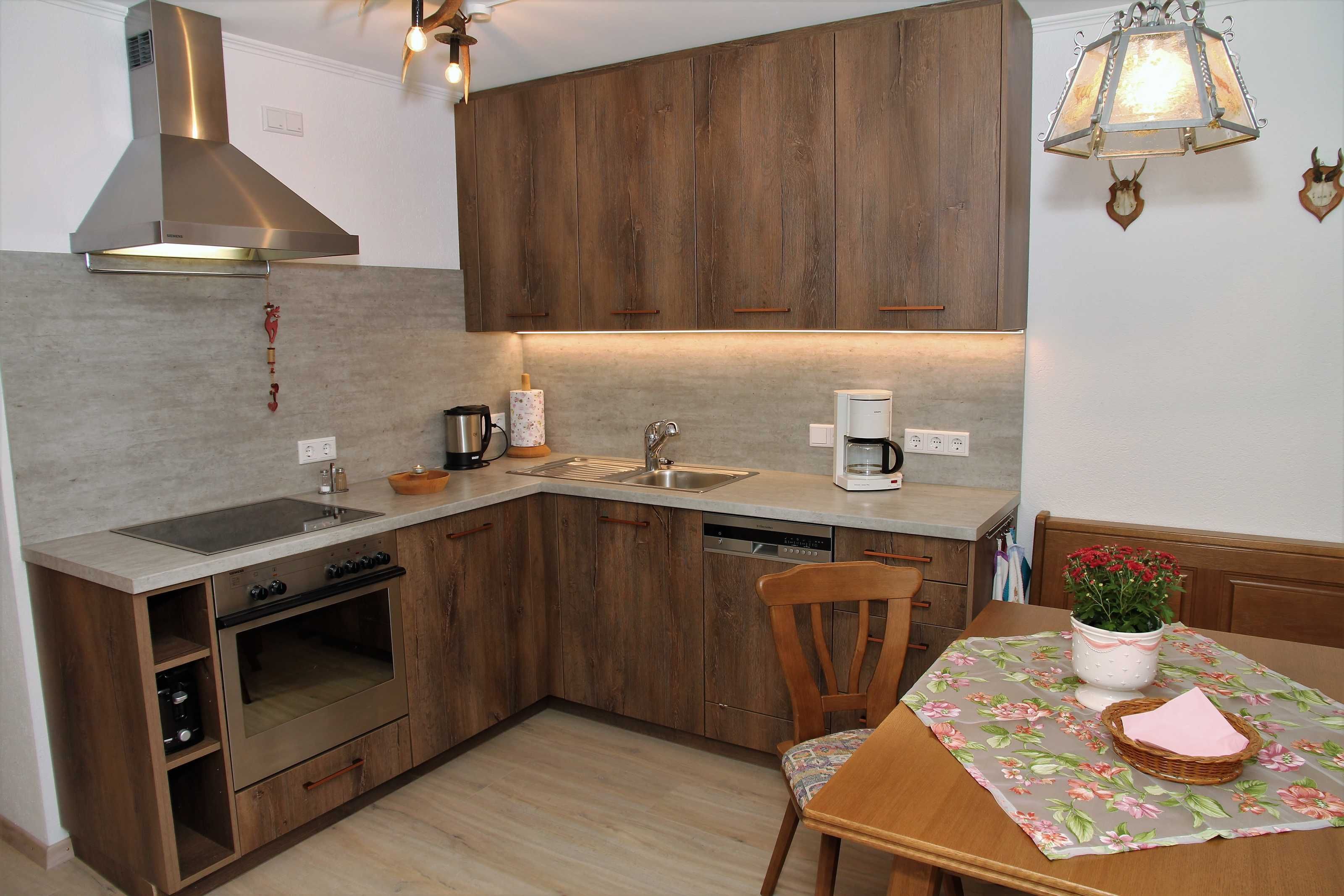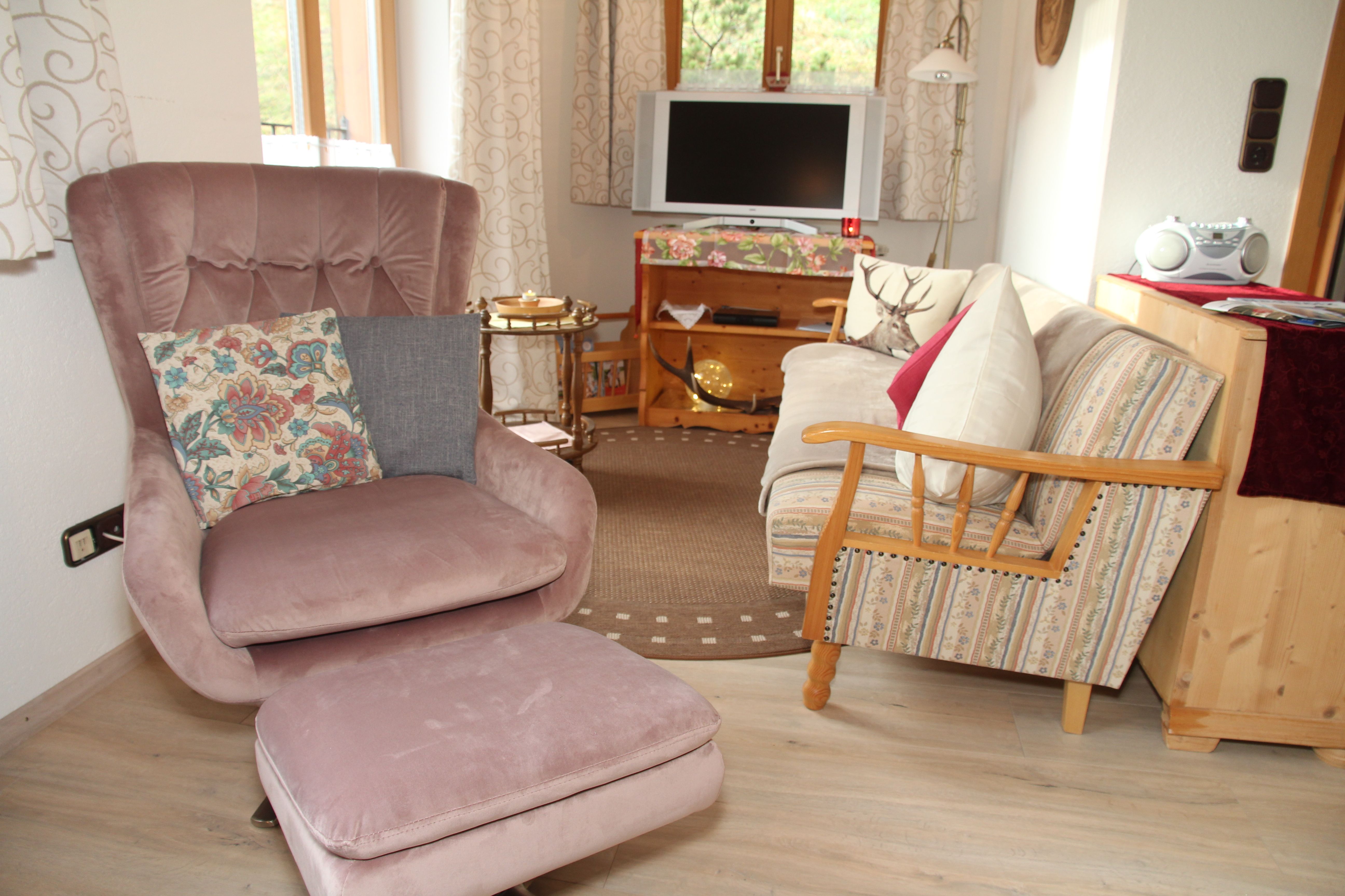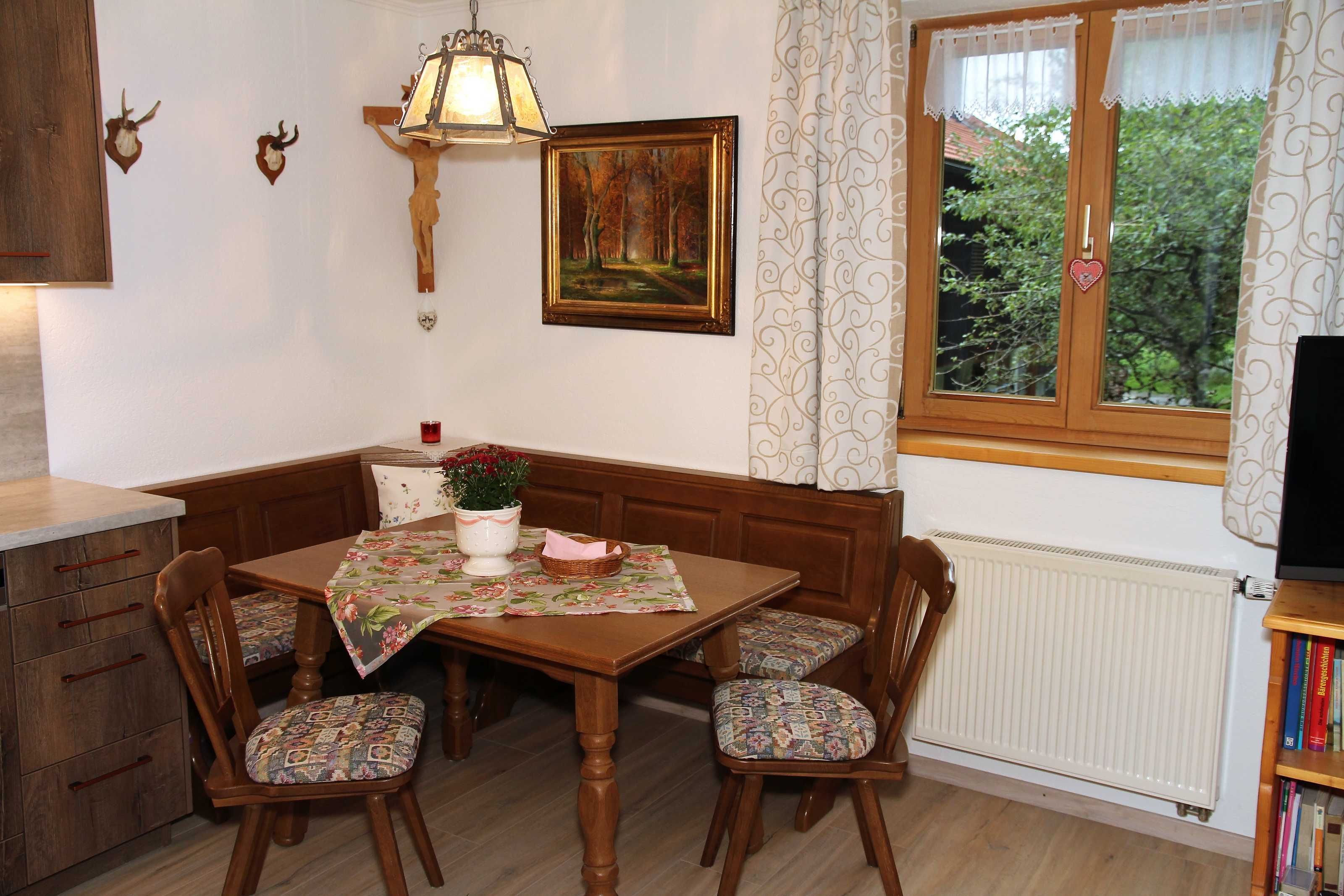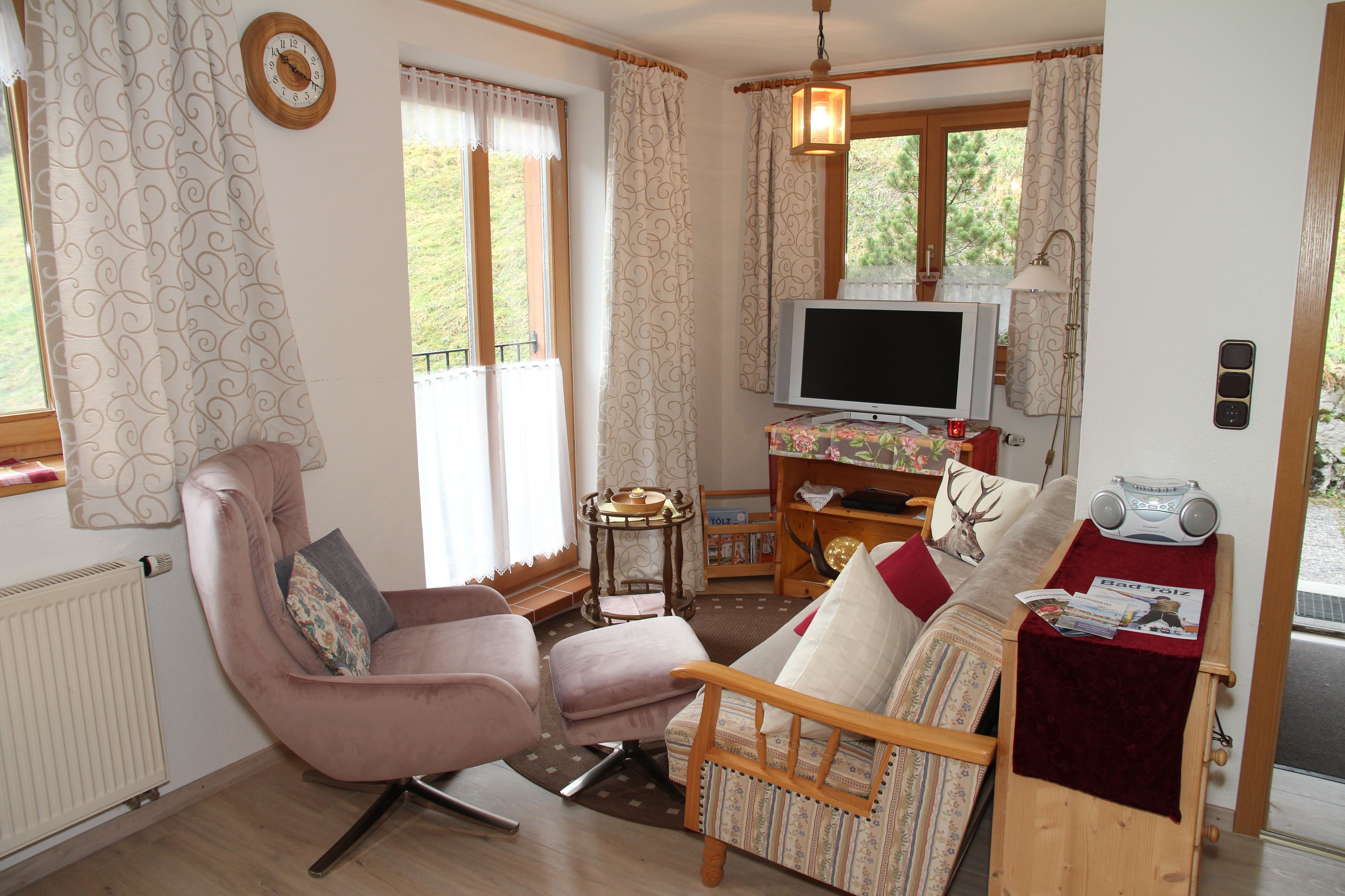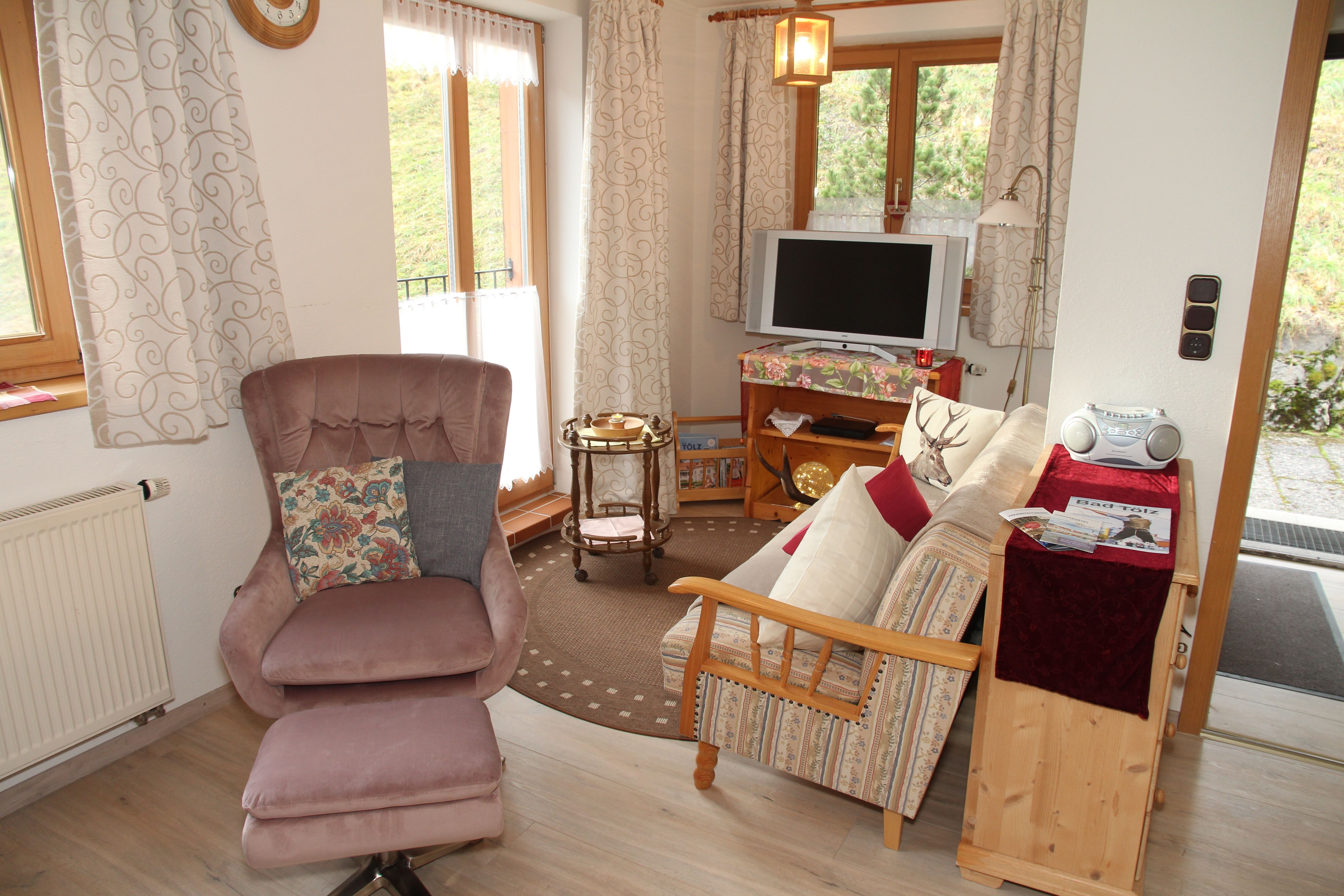 Die Ferienwohnung befindet sich im Nebengebäude, Hochparterre mit Terrasse und über eine Aussentreppe erreichbar. Urig, geschmackvoll eingerichtete Räume in gemütlicher Atmosphäre, in alpenländlichem Design. Wohnküche komplett ausgestattet, Schlafzimmer mit guten Matratzen und Bad mit reichlich Handtüchern.