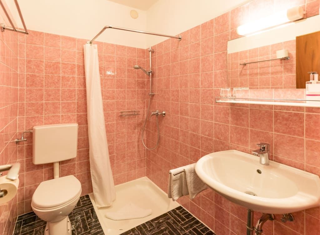 • Doppelzimmer mit Dusche und WC, mit Balkon und Gartenblick