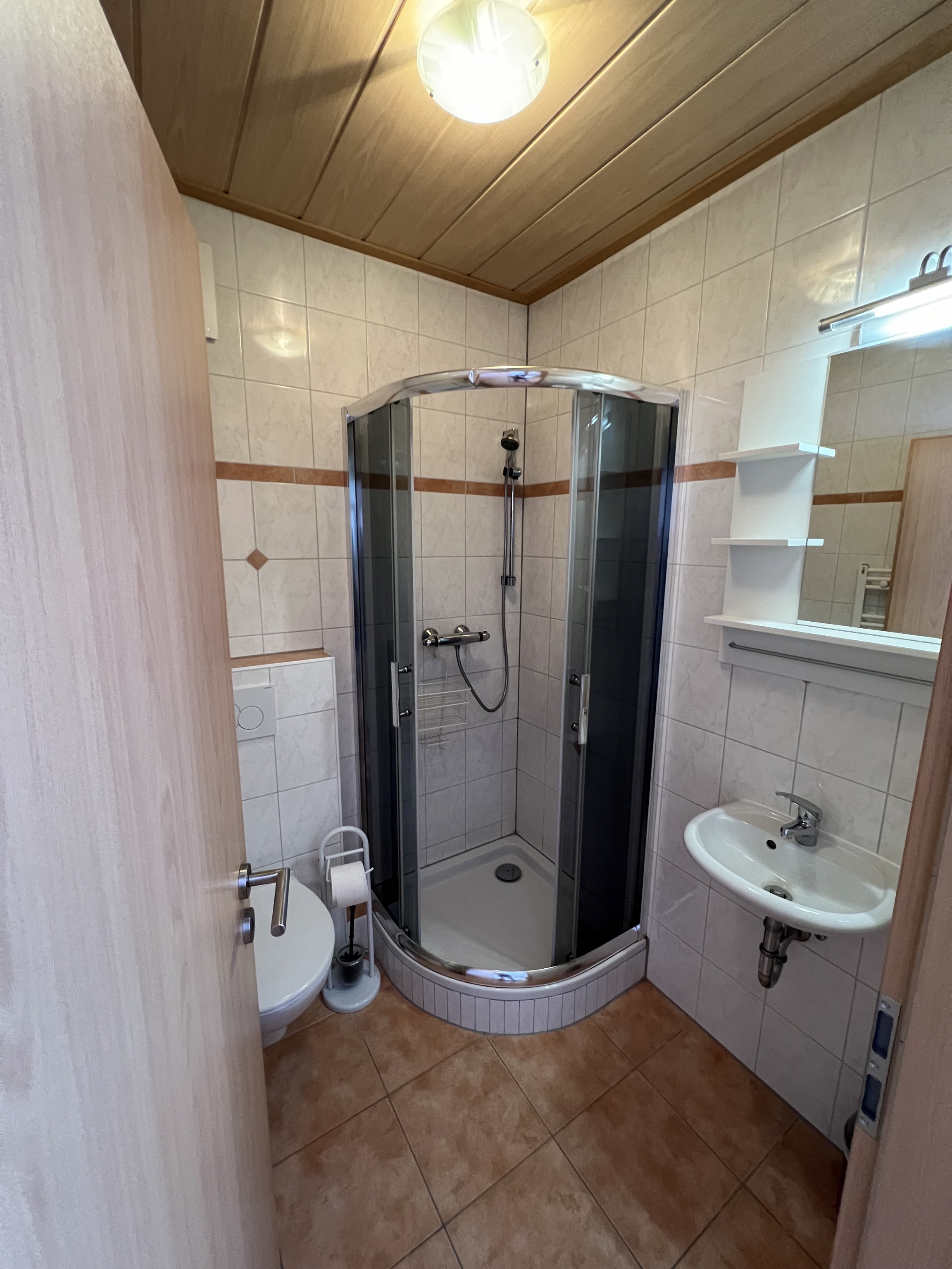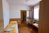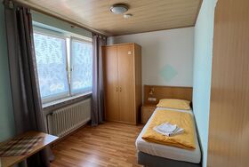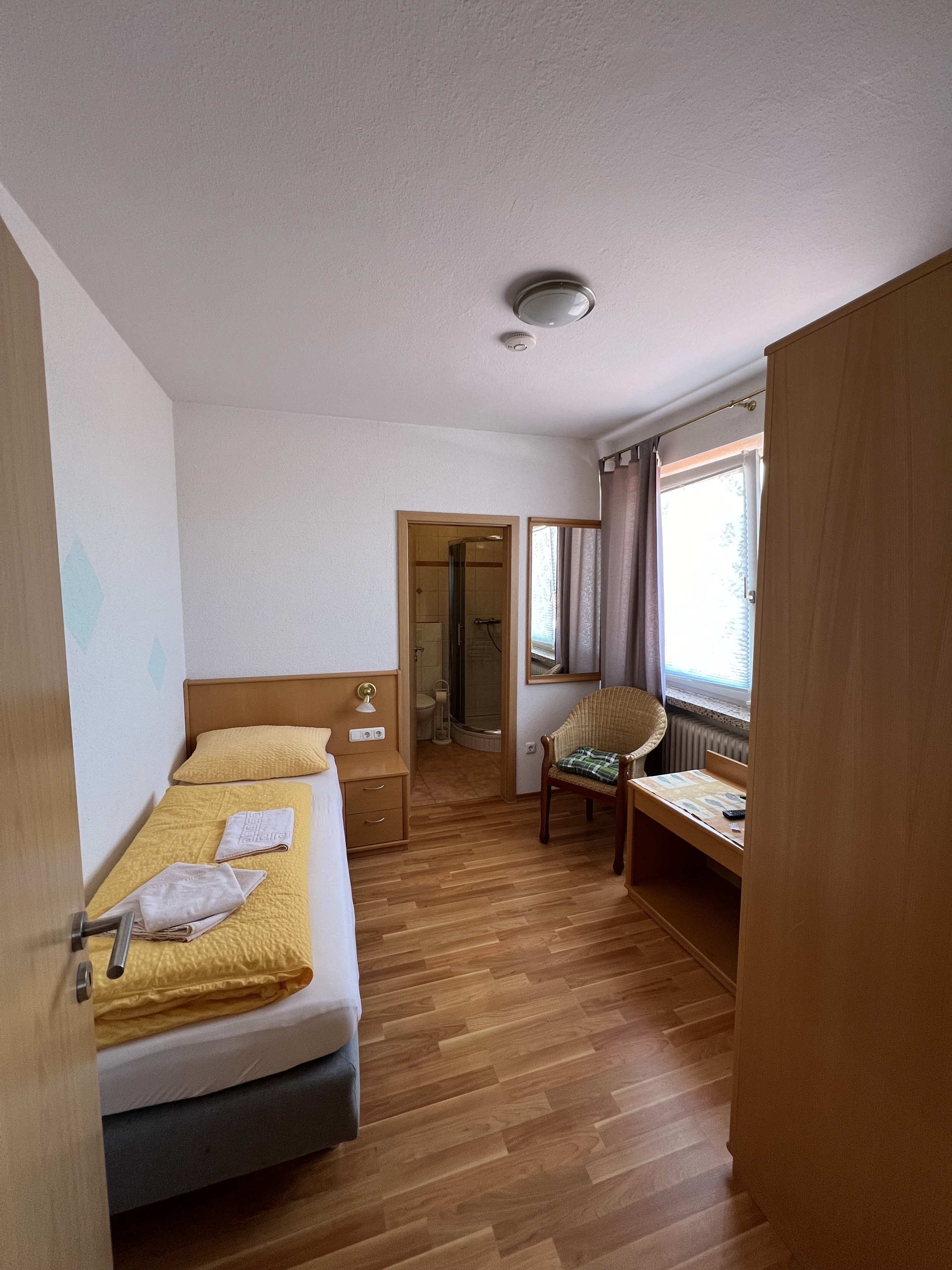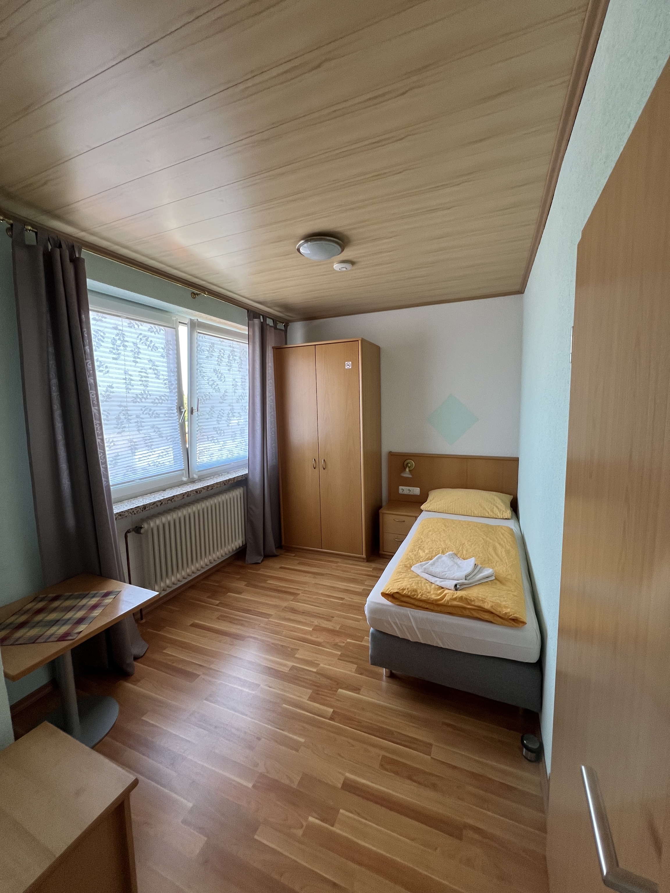 Das helle, freundliche Durchgangszimmer mit zusammen 18 qm verfügt über ein Schlafzimmer durch das ein weiteres Schlafzimmer erreichbar ist. Beide Zimmer verfügen über ein Einzel Boxspringbett und einen eigenen Flachbildfernseher sowie WLAN. Das Badezimmer befindet sich im Anschluss an eines der Zimmer und verfügt über Dusche und WC. Handtücher und Bettwäsche stehen zur Verfügung.