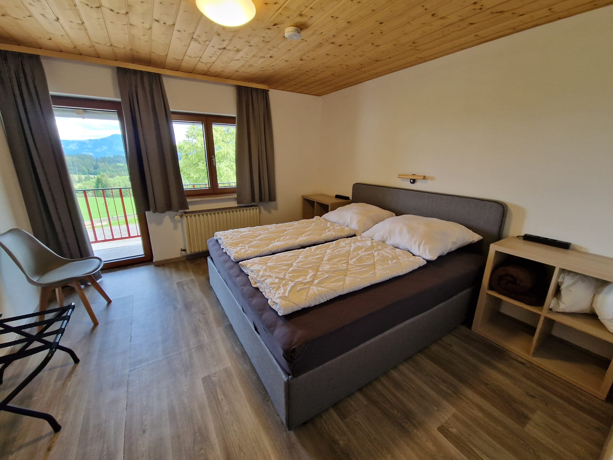 Unser Gästehaus befindet sich in traumhafter Alleinlage mit Rundblick auf die Allgäuer Alpenkette in 1000 m Höhe. Hier ist die Welt noch in Ordnung und Ihnen wird viel Ruhe zum Erholen geboten. Zu jeder Jahreszeit hat unsere Umgebung seinen besonderen Reiz, ob Sie Entspannung. Ruhe oder die sportliche Herausforderung suchen. Kinder dürfen selbstverständlich am Leben auf dem Bauernhof teilnehmen und sind immer gerne gesehen. Unsere Tiere freuen sich immer über besondere Zuwendung. Ob Frühjahr, Sommer, Herbst oder Winter. Zu jeder Jahreszeit finden sie eine abwechslungsreiche Landschaft und gesunde Luft. Saftig grüne Wiesen, klare Bergseen oder eine verschneiter Wintertraum laden Sie zu einem unvergesslichen Urlaub bei uns in der Ferienregion Alpsee-Grünten ein. Gästehaus Frontview Unser 2021 renoviertes Gästehaus liegt im separaten Anbau des Bauernhofes und bietet 4-10 Personen Platz. Die 2022 renovierte Ferienwohnung, im Nebenhaus, geeignet für 2-9 Personen ist sehr wohnlich und gemütlich ausgestattet. Für Gruppen besteht immer die Möglichkeit, bis zu drei Wohnungen anzumieten. Im Gästehaus sind Aufenthaltsbereich und Küche groß genug gestaltet das problemlos alle Personen Platz finden. Der Abstand zwischen den Gebäuden beträgt ca. 100 m. Freuen Sie sich auf Urlaub und Erholung im Herzen des Oberallgäus. Wir freuen uns auf Ihren Besuch! Ihre Familie Rimmel