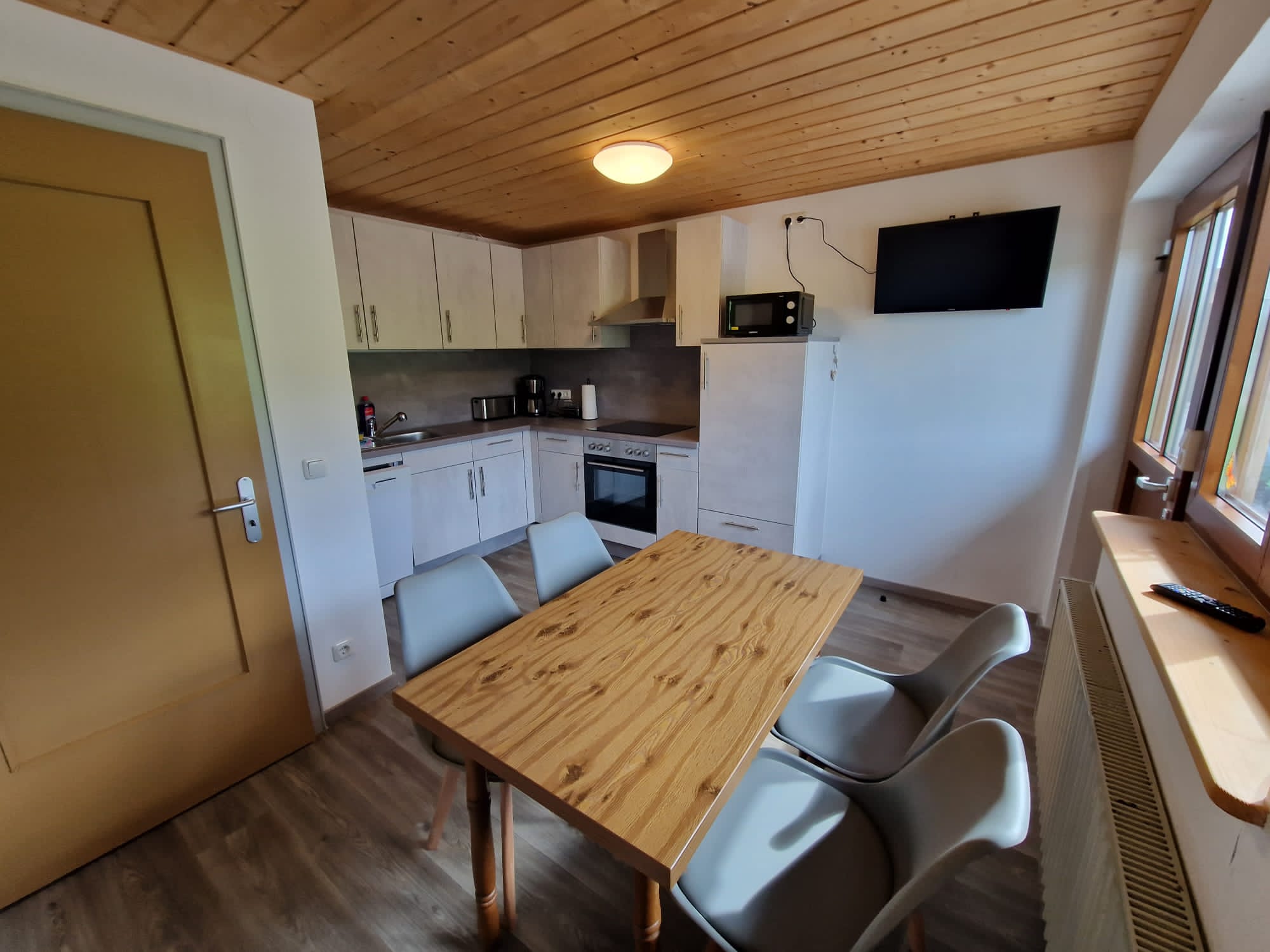 Die 2024 renovierte Ferienwohnung für 2-4 Personen ist sehr wohnlich und gemütlich ausgestattet. Vorhanden sind zwei Doppelzimmer, ein großzügiges Badezimmer sowie eine Wohnküche mit Sitzgruppe. Kostenloser WLAN-Zugang, Smart-TV mit gängigen Streamingdiensten, in den Schlafzimmern und der Wohnküche gehören ebenfalls dazu. Es gibt ein Badezimmer mit großer Dusche, Badewanne und WC. In einem Schlafzimmer befindet sich zudem noch ein Waschbecken. Im Außenbereich gibt es Sitzgelegenheiten sowie einen Grillplatz. Auf Anfrage können bis zu 2 Babybetten zusätzlich bereitgestellt werden. Die Ferienwohnung ist eine Selbstversorgerwohnung und ist geeignet für einzelne Familien oder Monteure. Bettwäsche und Handtücher müssen mitgebracht werden. Schlafsäcke sind nicht erwünscht.