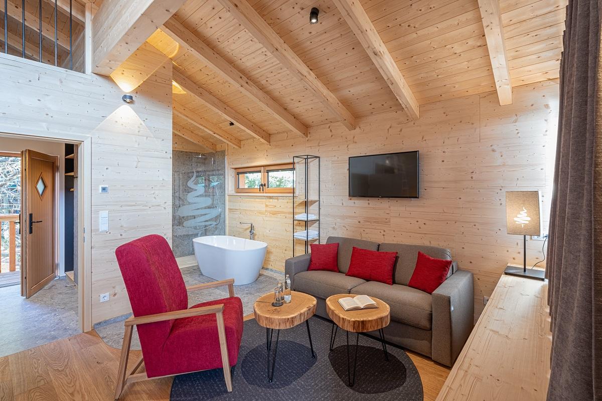 Das Baumhotel Waldloft verfügt über eine Fläche von ca. 45m² und thront, wie auch alle anderen neueren Häuser, ca. 8m über dem Boden. Das Baumhotel mit Loft-Design bietet einen großen, offenen und hohen Raum mit Kuschelecke und lädt in dieser individuellen Atmosphäre zum Wohlfühlen ein. Das Waldloft bietet einen großen offenen und hohen Raum mit Kuschelecke, freistehender Badewanne und Regendusche. Genießen Sie die Zeit zu zweit und erleben einen unvergesslichen Aufenthalt.