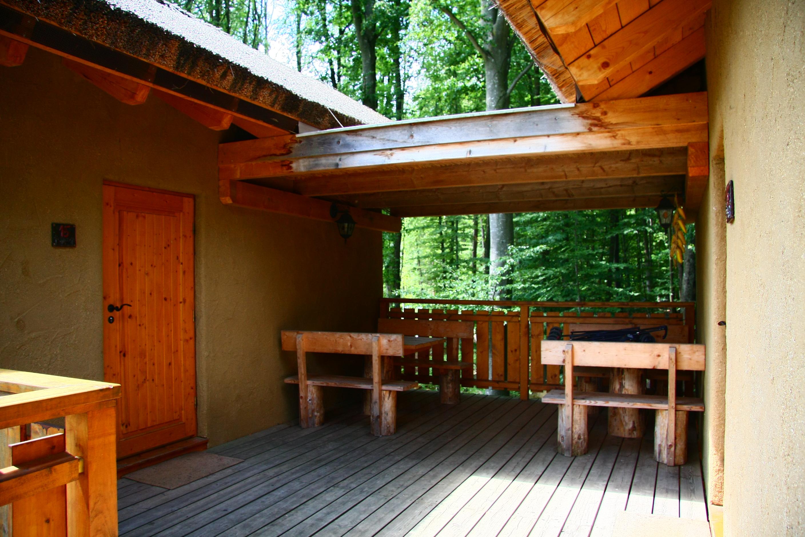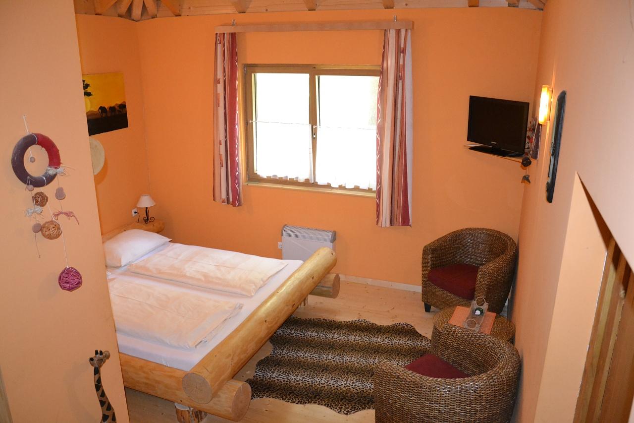 Das Baumhaus Afrika Classic befindet sich in 6 Metern Höhe samt Dusche, WC, Waschbecken, TV, Kühlschrank, Terrasse sowie einem Doppelbett, einem Stockbett (+ Möglichkeit auf ein Zusatzbett) direkt neben der hauseigenen Poolanlage mit Wasserrutsche.