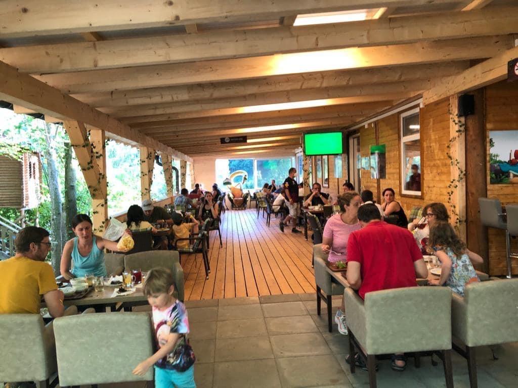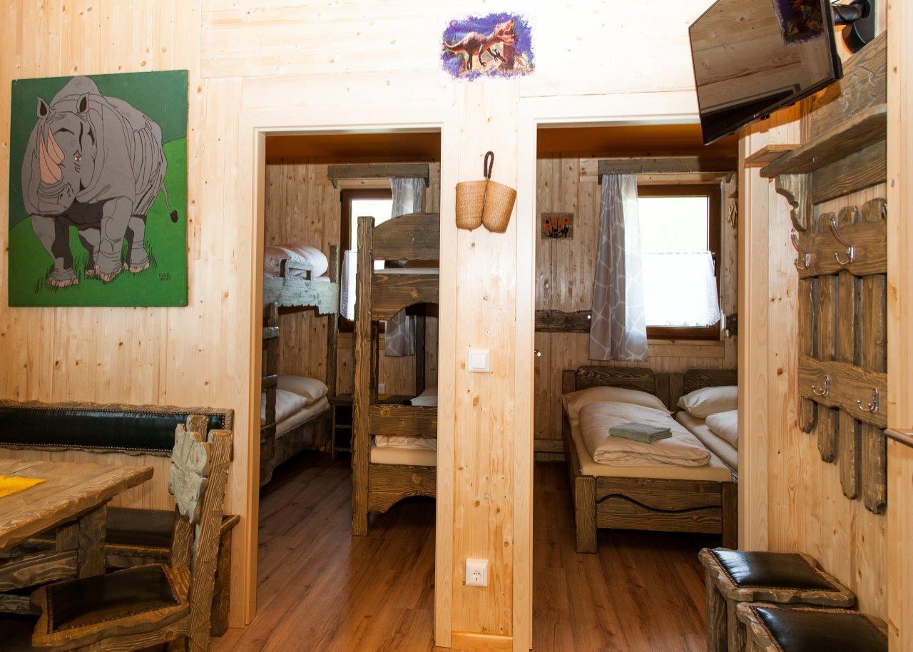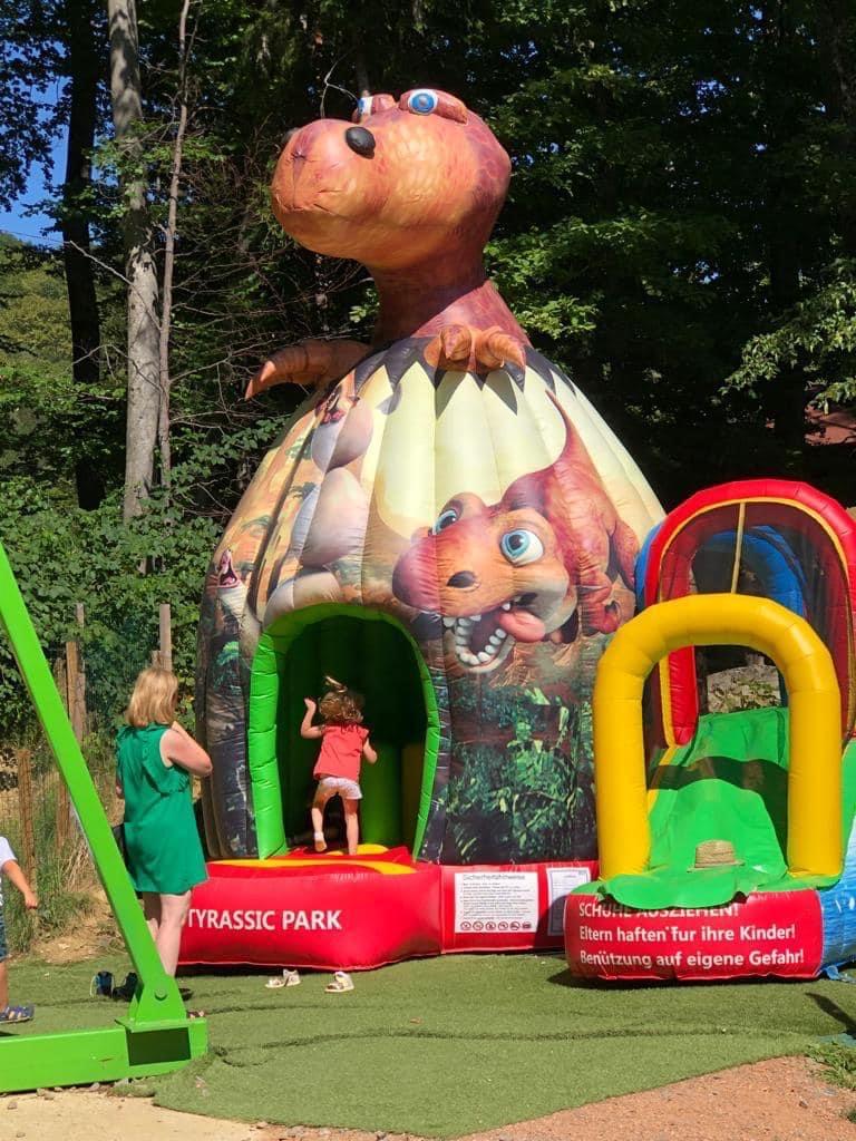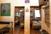 Im Baumhaus Neandertal können bis zu 6 Personen drinnen schlafen. Dieses ist mit 2 getrennten Schlafzimmern (1x Doppelbett und 2x Stockbett), einer handgeschlitzten Küche, einem Badezimmer mit WC, Dusche und Waschbecken sowie einem TV, einer Sitzecke, einer Außenterrasse und einem Lift ausgestattet und befindet sich direkt neben dem Dino-Restaurant.