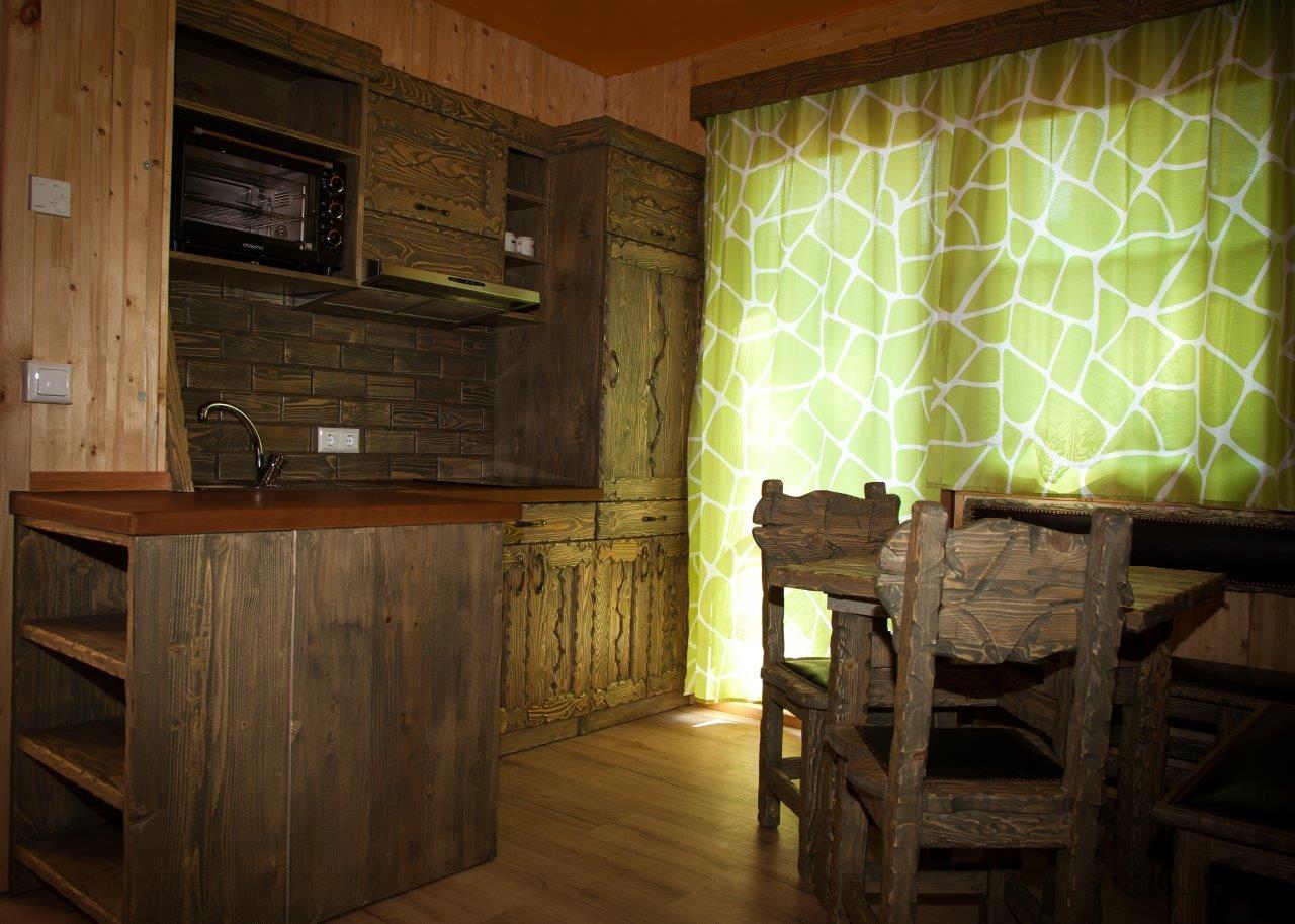 Im Baumhaus Neandertal können bis zu 6 Personen drinnen schlafen. Dieses ist mit 2 getrennten Schlafzimmern (1x Doppelbett und 2x Stockbett), einer handgeschlitzten Küche, einem Badezimmer mit WC, Dusche und Waschbecken sowie einem TV, einer Sitzecke, einer Außenterrasse und einem Lift ausgestattet und befindet sich direkt neben dem Dino-Restaurant.
