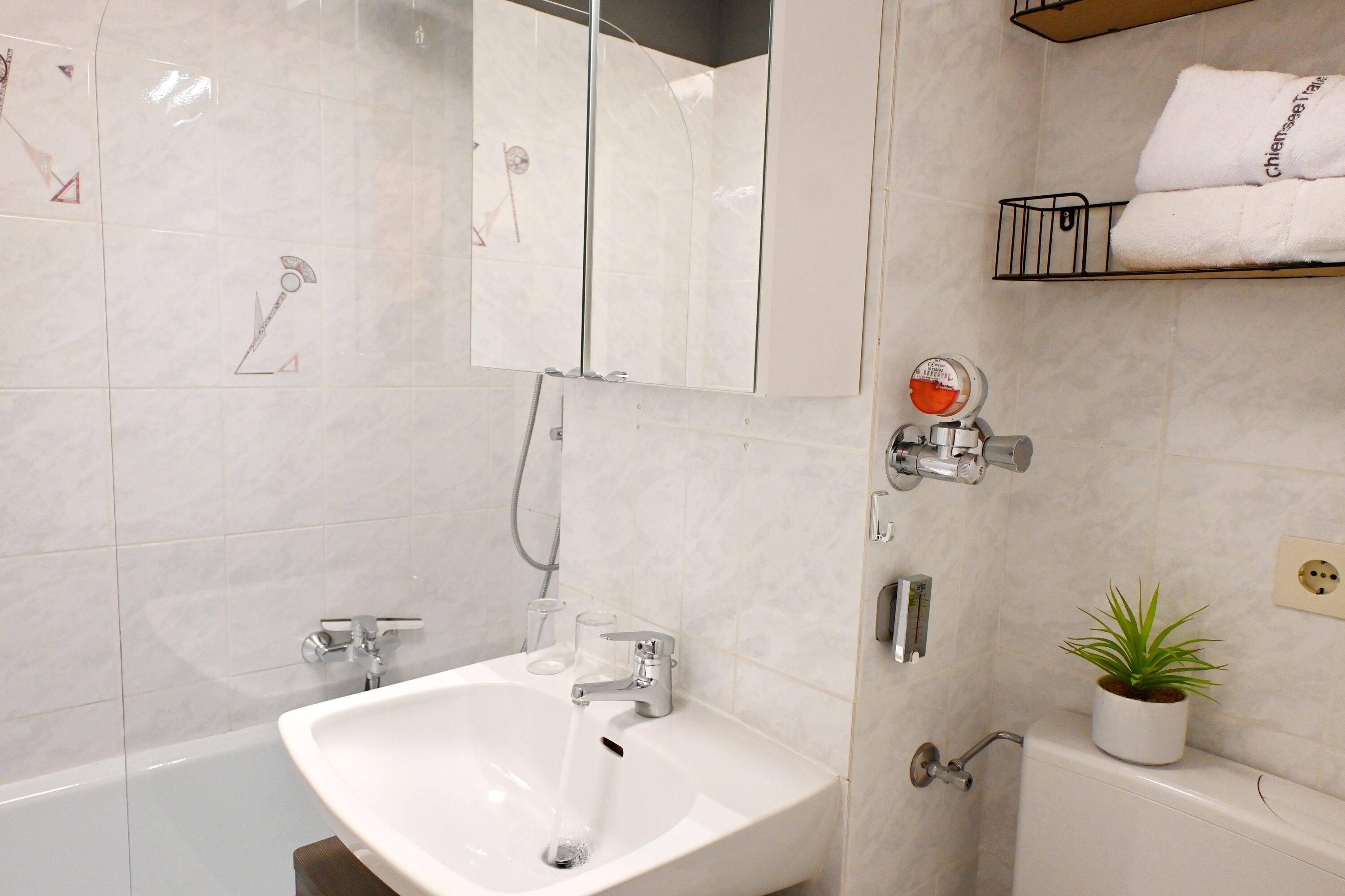 Klein aber fein präsentiert sich das 1-Zimmer-Apartment ChiemseeTraum, welches im 1.Stockwerk gelegen ist (es sind 2 Stockwerke jedoch zu gehen). Der geschickt und modern gestaltete Wohn-, Ess- und Schlafbereich bietet alles, um den Urlaub in vollen Zügen genießen zu können. Vom Ost-Balkon bietet sich ein Blick auf den Bach und die Berge. Vervollständigt wird das Feriendomizil durch offene Küche, Flur mit Garderobe, sowie Badezimmer mit Badewanne, Waschbecken und WC.
