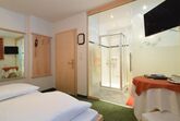 Beide Einzelkomfortzimmer sind neu renoviert mit Ahornmöbeln, neuen Bädern mit Dusche (Zi. Nr. 3 mit Raindusche), Waschbecken, Fön, WC und Handtuchtrockner. Ruhig gelegen, im 1.Stock bzw. im Parterre mit Kabel-TV, Telefon, Safe. Kühlschrank und Radiowecker (im EZ Nr. 5).