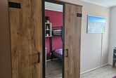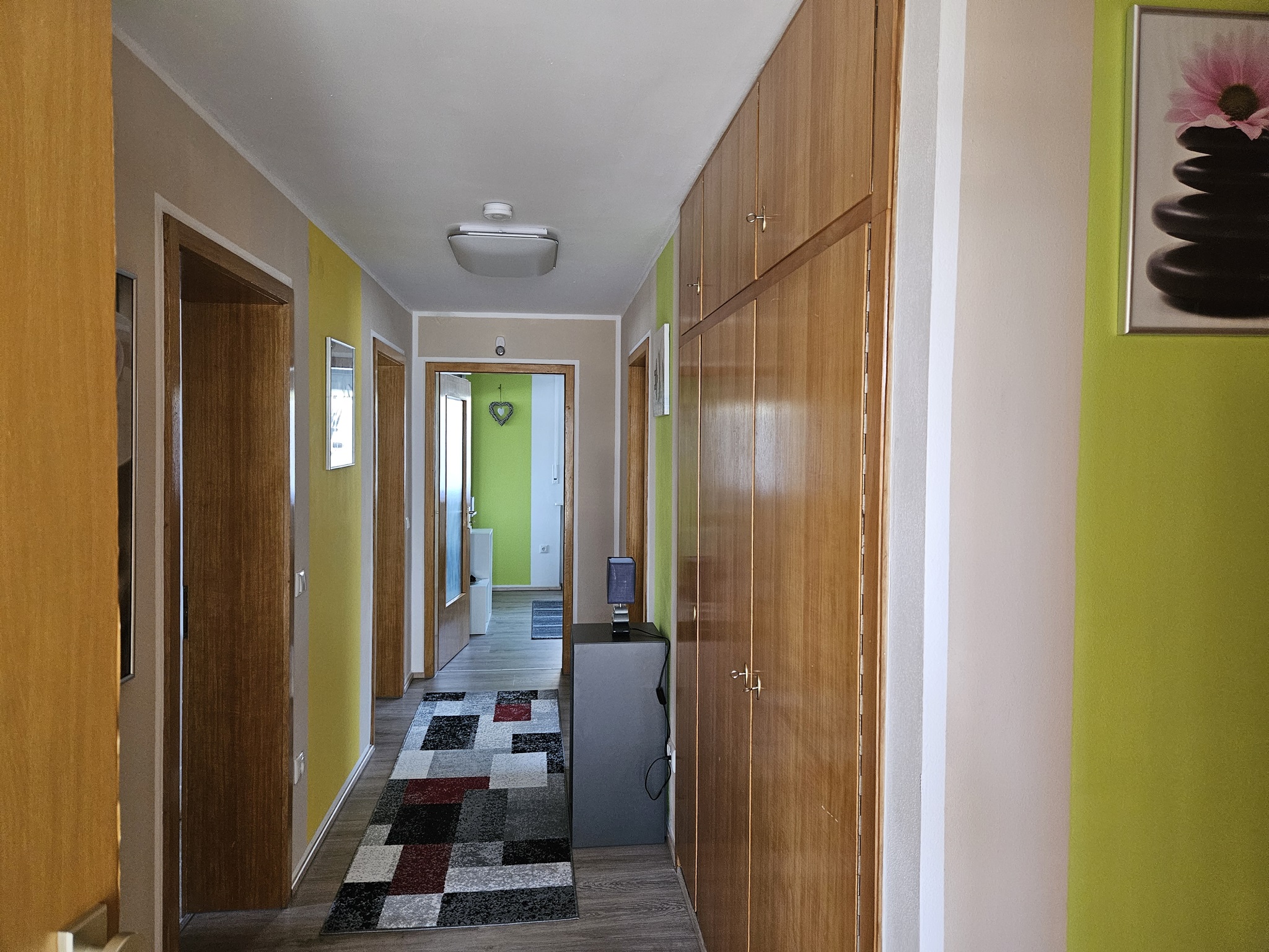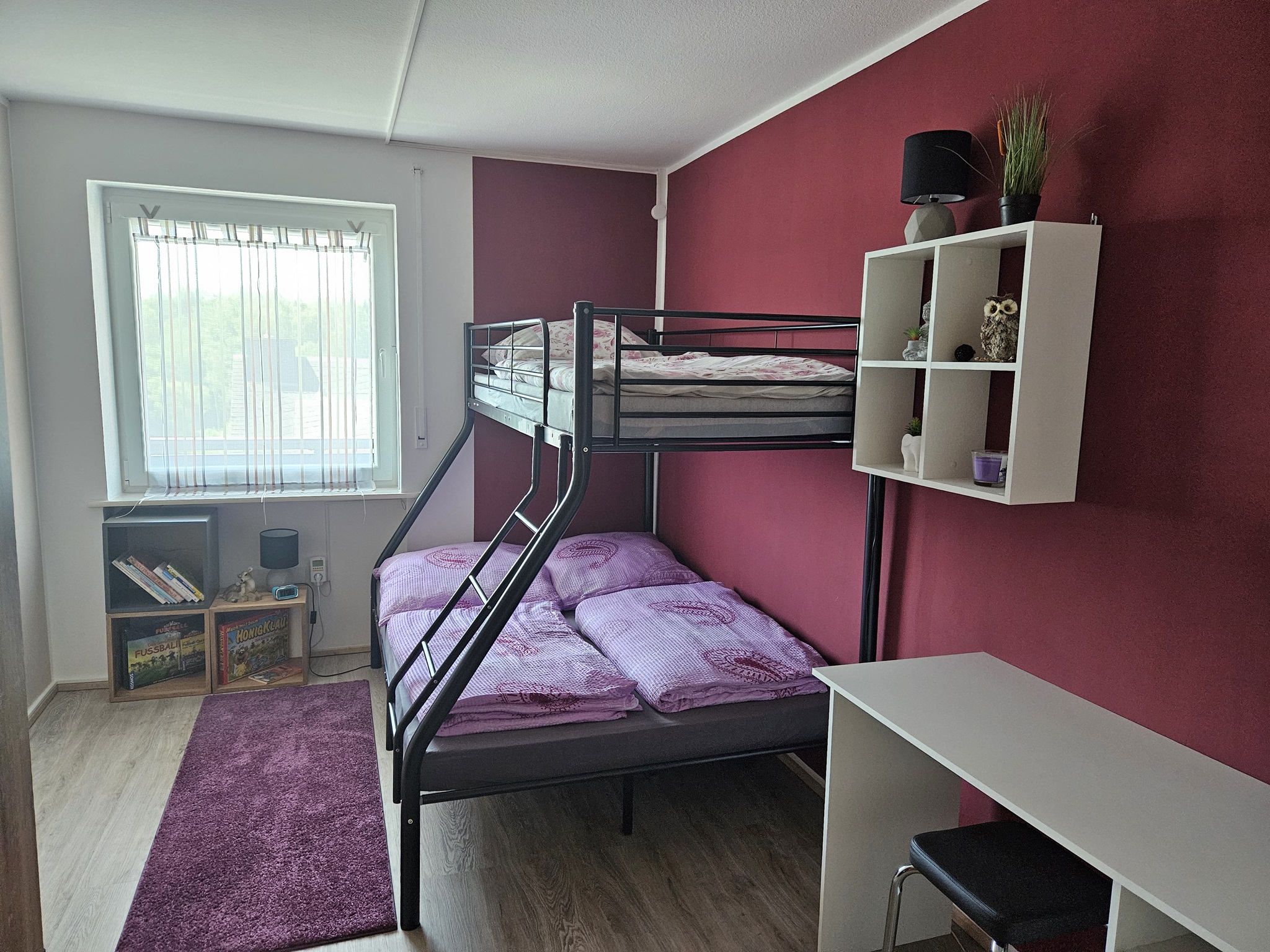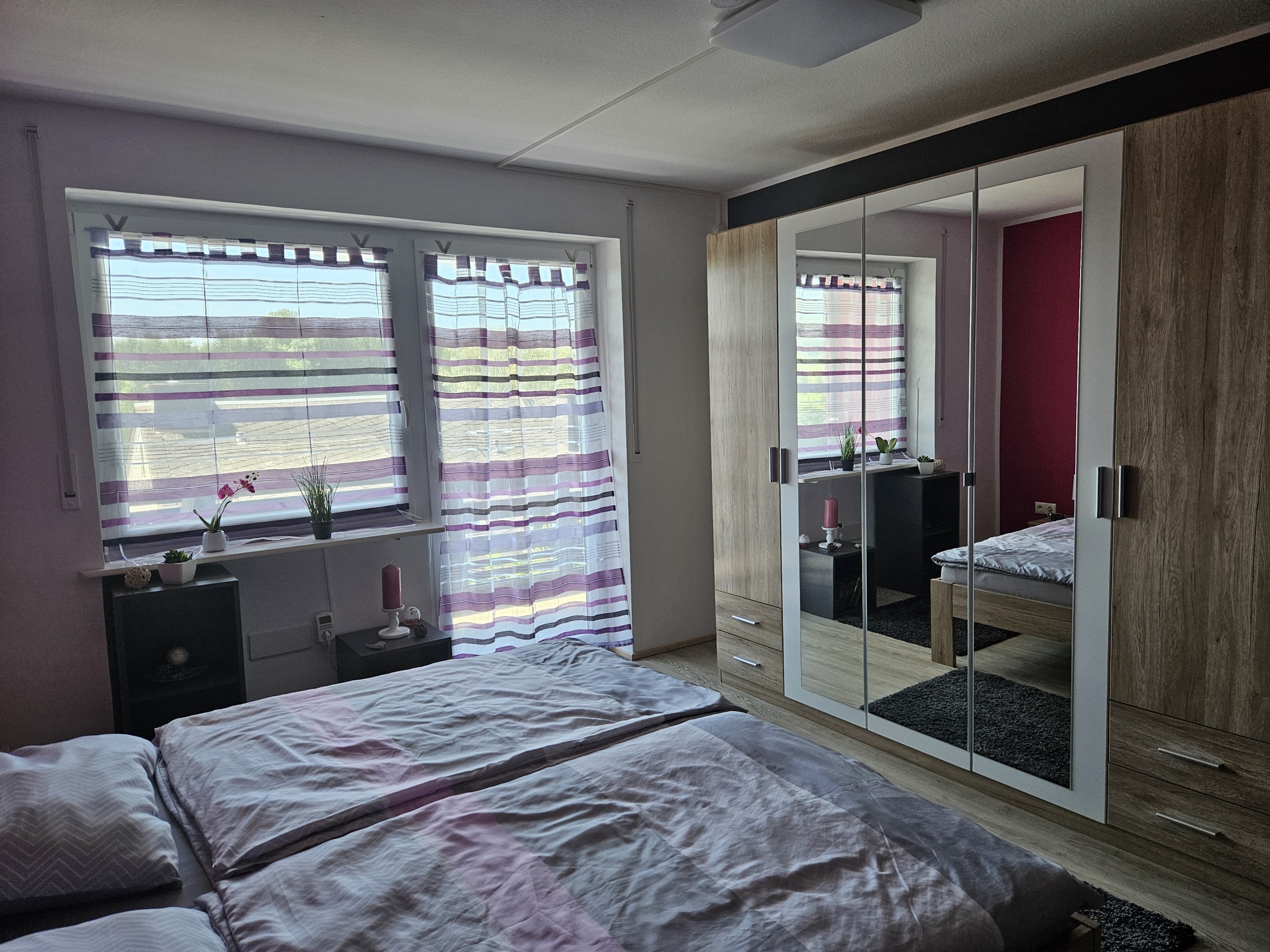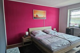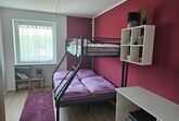 Die 120m² große Wohnung befindet sich im Erdgeschoß. Es gibt ein Schlafzimmer mit Doppelbett, großem Kleiderschrank mit Ganzkörperspiegel und Balkonzugang. Ein Kinderzimmer mit Etagenbett ( unten 140x200 oben 90x200 ),Kleiderschrank, Schreibtisch und Spielecke.