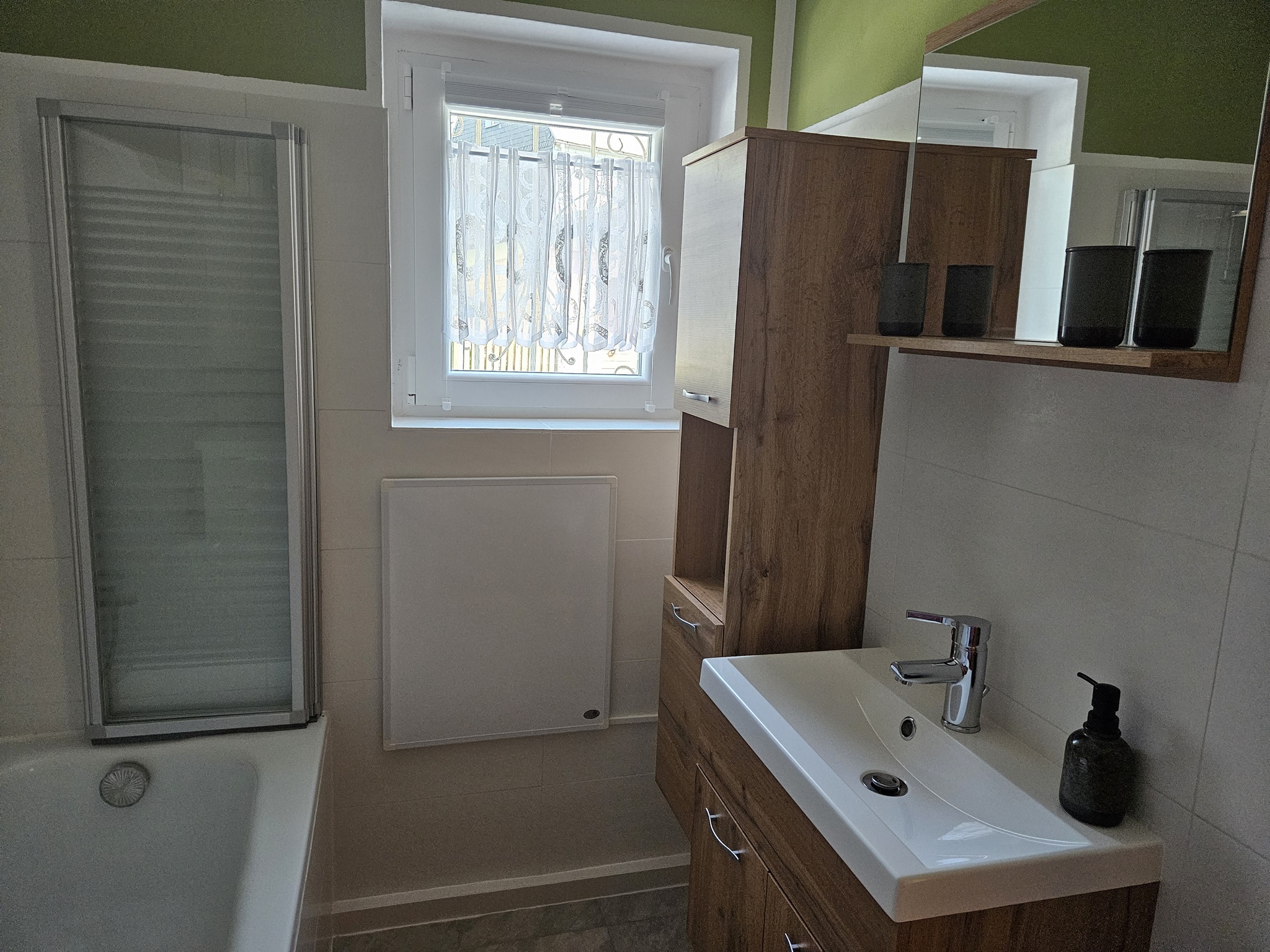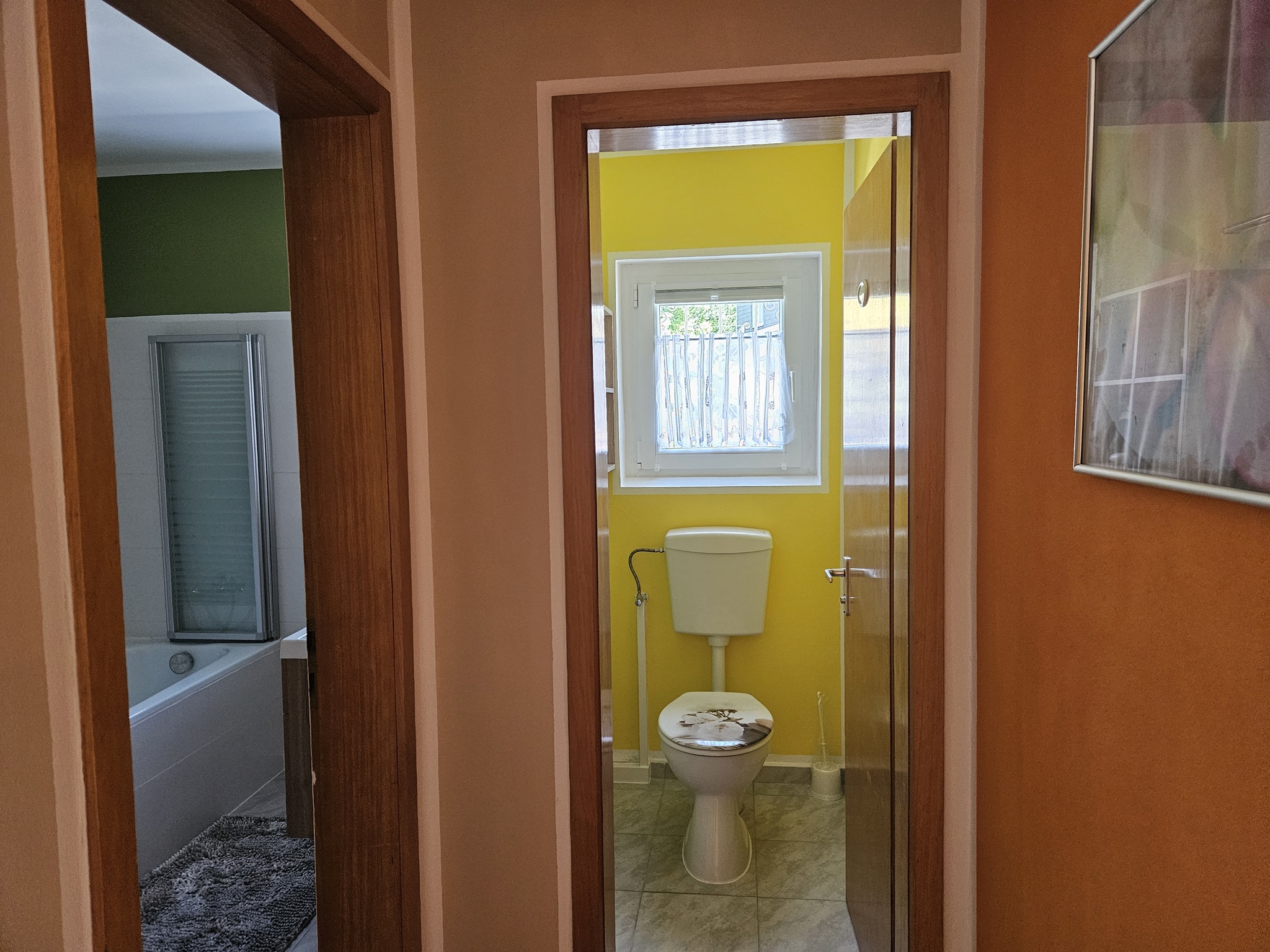 Es gibt ein separates Esszimmer. In der Küche ist alles vorhanden was man braucht. Bad und WC sind getrennt. Das Bad hat eine Badewanne mit Dusche und einen Waschtrockner. Bettwäsche, Handtücher, Seife, Fön, Bügeleisen... gehören zur Grundausstattung.