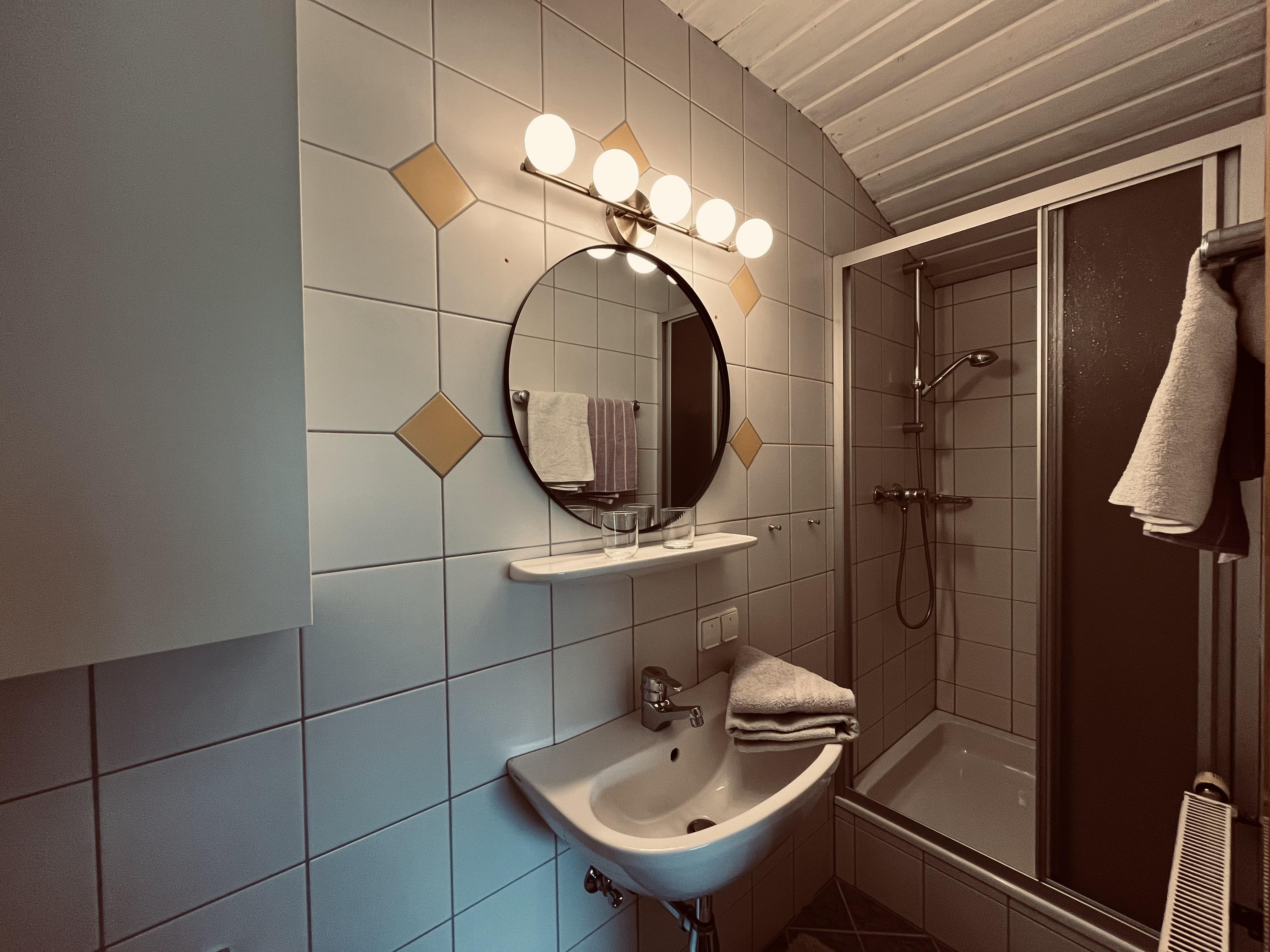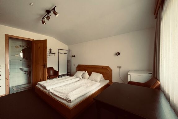 Zimmer mit Doppelbett - ca. 55m² - gemütlich eingerichtet mit Talblick - Bad mit WC und Dusche