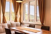 für 4 Personen, 3-Zimmer-Wohnung 48 m2. Hell, komfortabel und geschmackvoll eingerichtet: 1 Doppelzimmer. 1 Zimmer mit 1 x 2 Etagenbetten. Wohnküche (Backofen, Geschirrspüler, 4 Glaskeramikplatten, Toaster, Wasserkocher, Mikrowelle, elektrische Kaffeemaschine) mit Sat-TV (Flachbildschirm). Dusche/WC. Balkon oder Terrasse. Terrassenmöbel. Schöne Sicht auf die Berge und die Landschaft. Zur Verfügung: Haartrockner. Internet (Wireless LAN, gratis). Bitte beachten: Nichtraucher-Unterkunft.