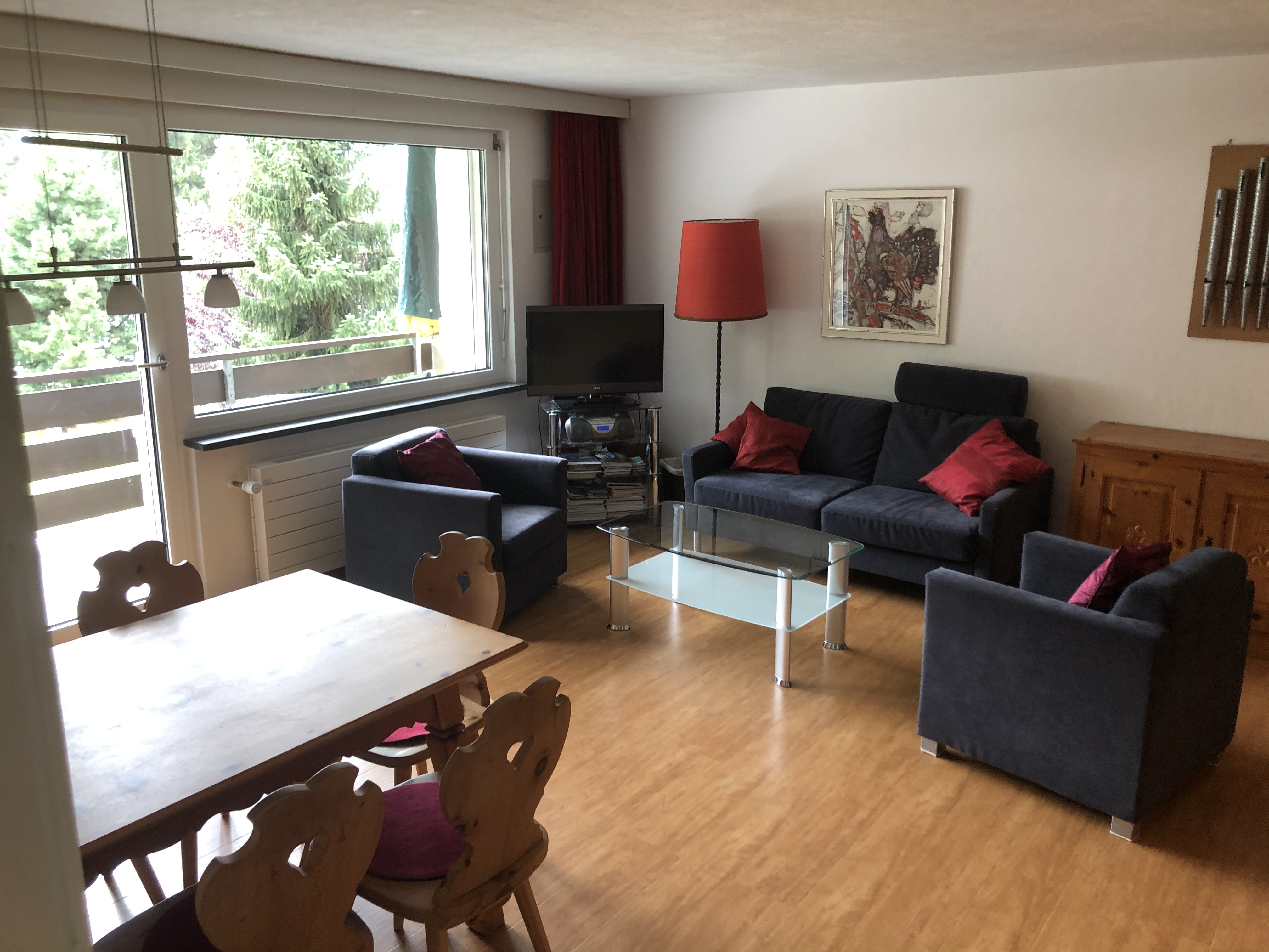 Die Wohnung befindet sich im 2. Stock eines Hauses nahe der Bergbahnen. Ein herrliches Hallenbad und Freibad sind im Preis inbegriffen und befinden sich im Gebäude (Rancho) nebenan. Schlüssel und Ausweis hängen dazu in der Wohnung. Zur Bushaltestelle benötigen Sie 2 Minuten, selbst zu Fuß sind Sie in 10 Minuten an der Talstation. Einkaufsmöglichkeiten gibt es außer an der Talstation, auch in Laax-Dorf, (mit dem Shuttle-Bus) bequem zu erreichen, oder auch zu Fuß in ca 15 Minuten. 2 Minuten vom Haus entfernt, gibt es eine Coop-Tankstelle, die für Brötchen und Kleinigkeiten sehr beliebt ist.