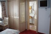 Badezimmer mit Dusche, Waschbecken, Haarfön, WC. Kabel-TV, Safe, Telefon, Kühlschrank und Radiowecker (im Zi. Nr. 6).Beide Zimmer in Ahornmöbeln.
