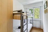Die Wohnung ist wie folgt aufgeteilt: Eingang, separate, vollständig ausgestattete Küche, Zimmer mit Stockbett, großes Zimmer mit zwei nebeneinander liegenden Einzelbetten, angrenzend an ein Badezimmer/WC. Ein zweites Badezimmer mit WC steht zur Verfügung.