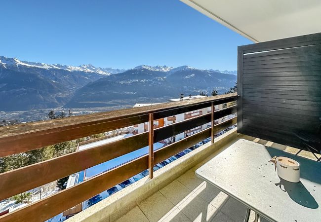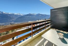 Der geräumige und lichtdurchflutete Wohnbereich öffnet sich zu einer schönen, voll nach Süden ausgerichteten Terrasse mit atemberaubendem Blick auf das Rhônetal und die Walliser Alpen. Er bietet 2 Ausziehbetten, also 4 zusätzliche Schlafplätze!