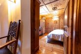 Sonstige Schlafzimmereinrichtung (Schlafzimmer1): Doppelstöckiges Zimmer mit Bett in einem Galerie und dem Badezimmer sowie Schränke mit Sekretär im Eingangsbereoich