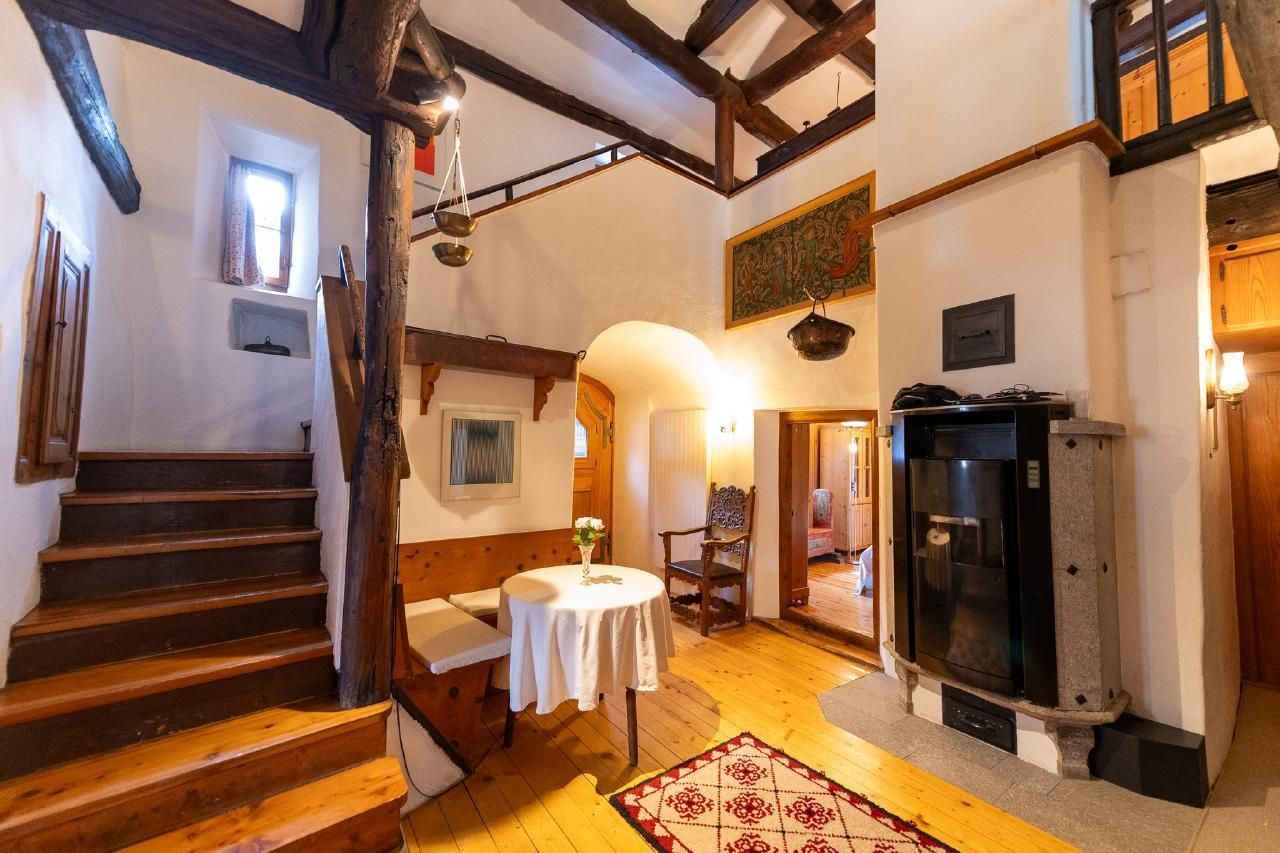 Das Haus wurde jahrzehntelang als Familienhaus genutzt. Die originale Inneneinrichtung wurde weitgehend übernommen, aber mit der erforderlichen Zurückhaltung wurde bei der Ausstattung Altes mit Neuem kombiniert. Die 6 ½ Zimmer erstrecken sich über zwei Etagen. Das Haus verfügt über ein grosszügiges Entrée mit einer zwei Etagen hohen Halle. Die schöne, alte Stüva (Stube bzw. Wohnzimmer) mit einem alten Ofen ist typisch für die Gegend und lädt zum Essen, Verweilen und geselligen Beisammensein ein. Eine grosse Küche, welche auch zum Essen genutzt werden kann, und 4 Schlafzimmer runden das Ganze ab. Die zwei Badezimmer sind nicht mehr auf dem neuesten Stand, ändern aber am Gesamteindruck nichts. Engadiner Häuser haben traditionell kleine Fenster und sind daher im Inneren ohne Beleuchtung eher dunkel. Daher hat das Haus im Innern zahlreiche Leuchtkörper.