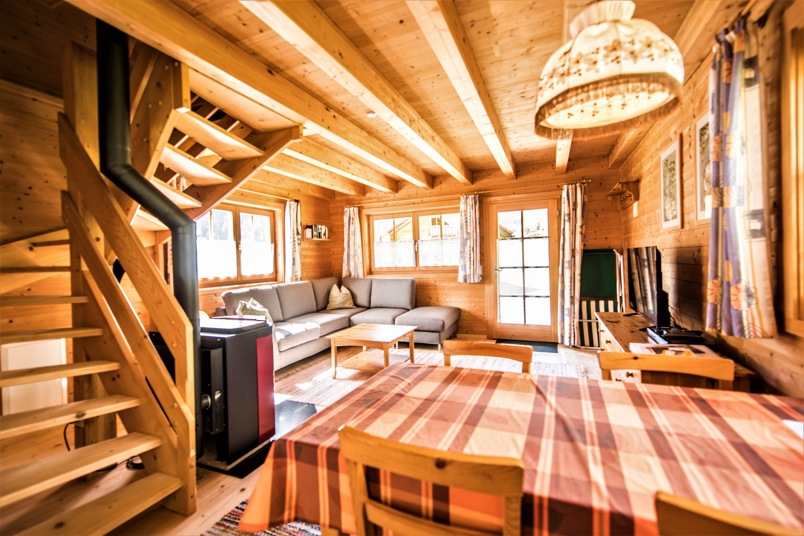 Drei Chalets auf der grünen Wiese am Dorf- und Waldrand. Sonnig gelegen mit Sicht nach Süden auf den Piz Lad, nahe dem Schweizer Nationalpark. Im Sommer zum Wandern oder Biken, im Winter zum Skifahren, Langlaufen, Touren- oder Schneeschuh laufen...oder einfach zu Entspannen.