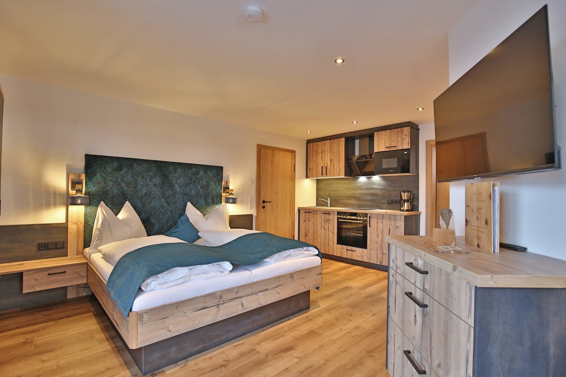 Im gewohnten Maurachhof Qualitätsstandard ist dieses schöne Appartement ausgestattet mit 2 getrennten Schlafräumen, Badezimmern mit Dusche, Wc, und Haarfön, gemütlicher Sitzecke , Gemütliche Küche mit Mikrowelle, Backofen, Kühlschrank mit Gefrierfach ,Geschirrspülmaschine, Wasserkocher, Backofen, Safe, Balkon , Kabel TV in Küche und Schlafzimmern,Kostenfreier Internetzugang , Radio und südseitig gelegenem Balkon mit Aussicht auf das Salzachtal.