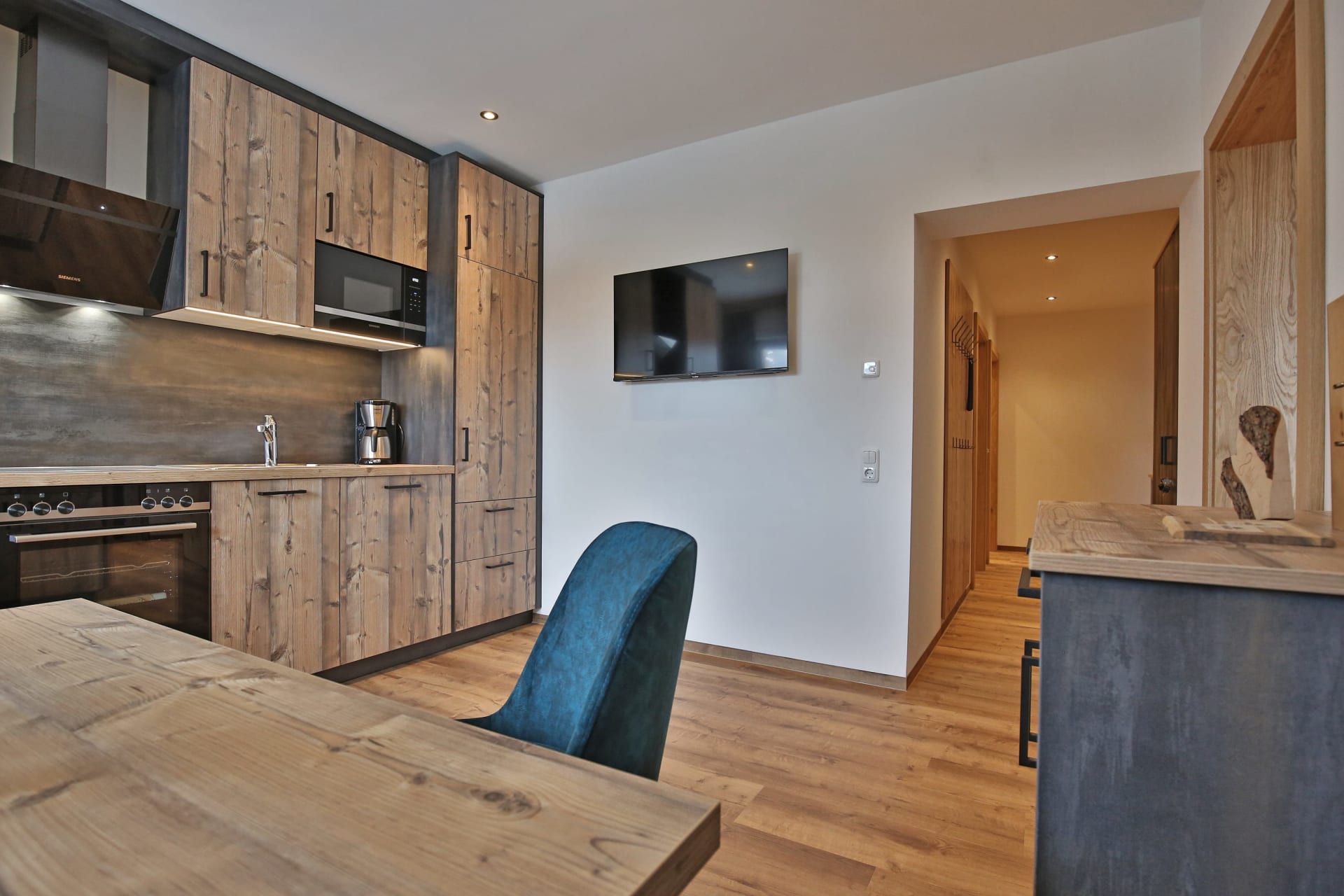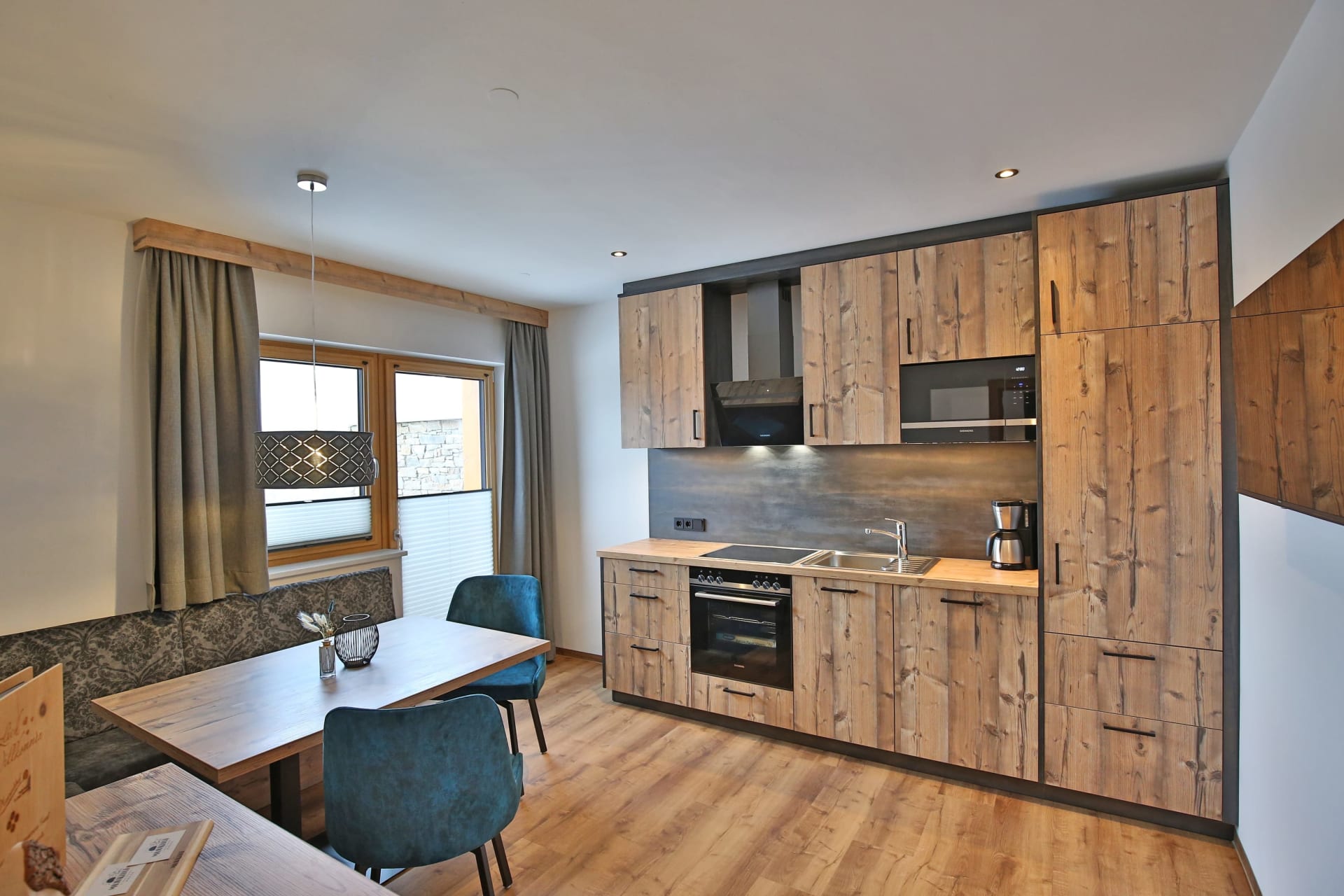 Im gewohnten Maurachhof Qualitätsstandard ist dieses schöne Appartement ausgestattet mit 2 Schlafräume , Badezimmer mit Dusche, Wc, und Haarfön, erstklassig ausgestattete Küche mit gemütlicher Sitzecke und Sofa, Mikrowelle, Backofen, Kühlschrank mit Gefrierfach, Geschirrspülmaschine, Wasserkocher, Kaffeemaschine, Backofen, Safe, Flat - TV in Küche und Schlafzimmer, W - LAN und Terrasse mit Blick zum Tal.